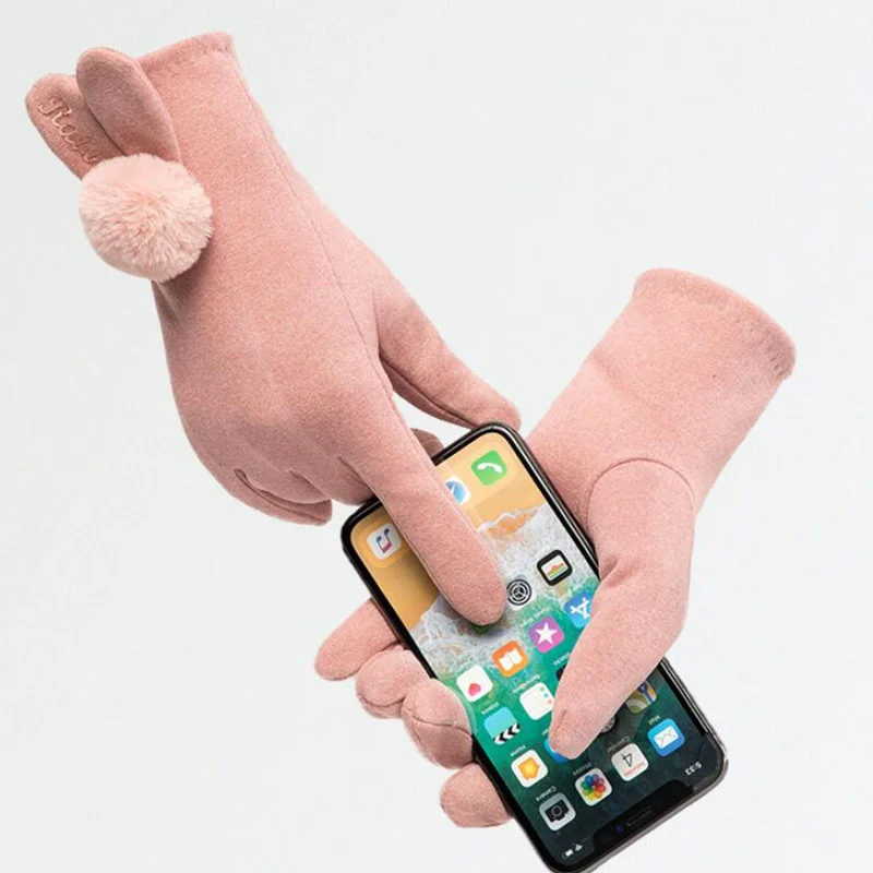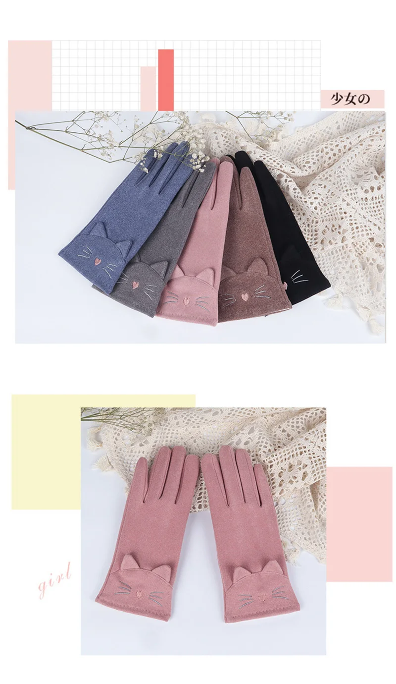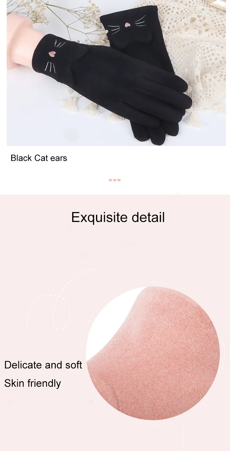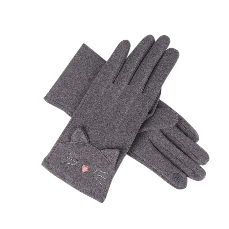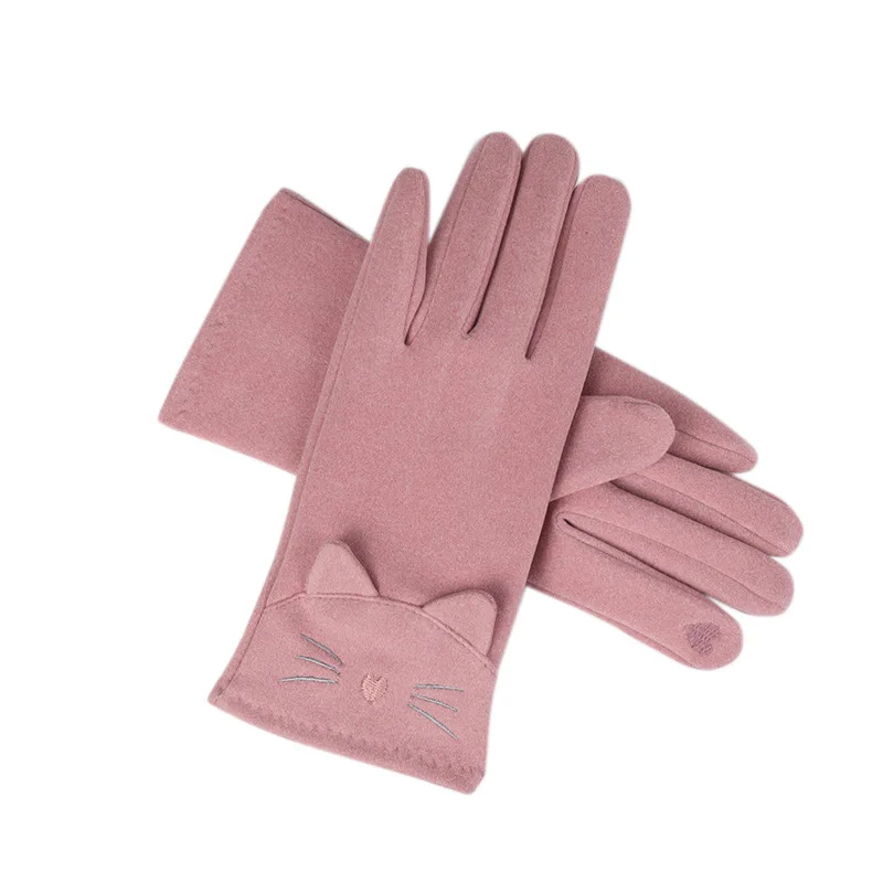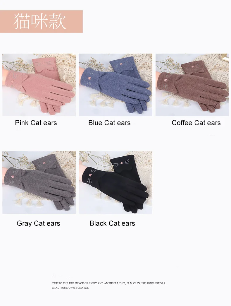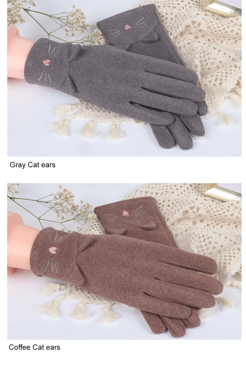 Женские осенние милые кашемировые эластичные перчатки для вождения с кроликом и кошкой, женские тонкие теплые велосипедные перчатки из кроличьего меха D50