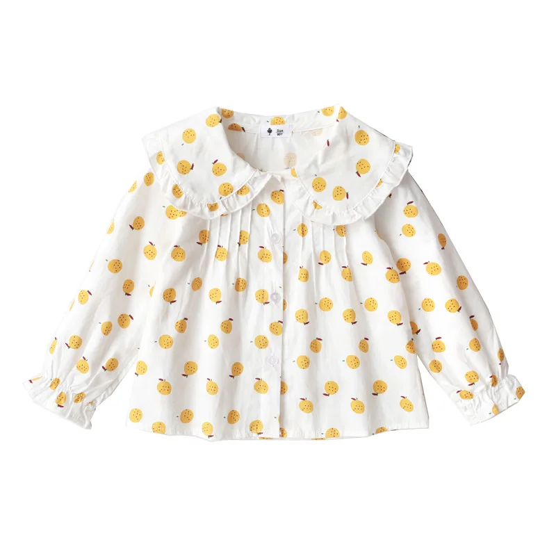 Блузки и рубашки для девочек, хлопковые, с отложным воротником, длинными рукавами, с принтом, RT676, От 2 до 9 лет