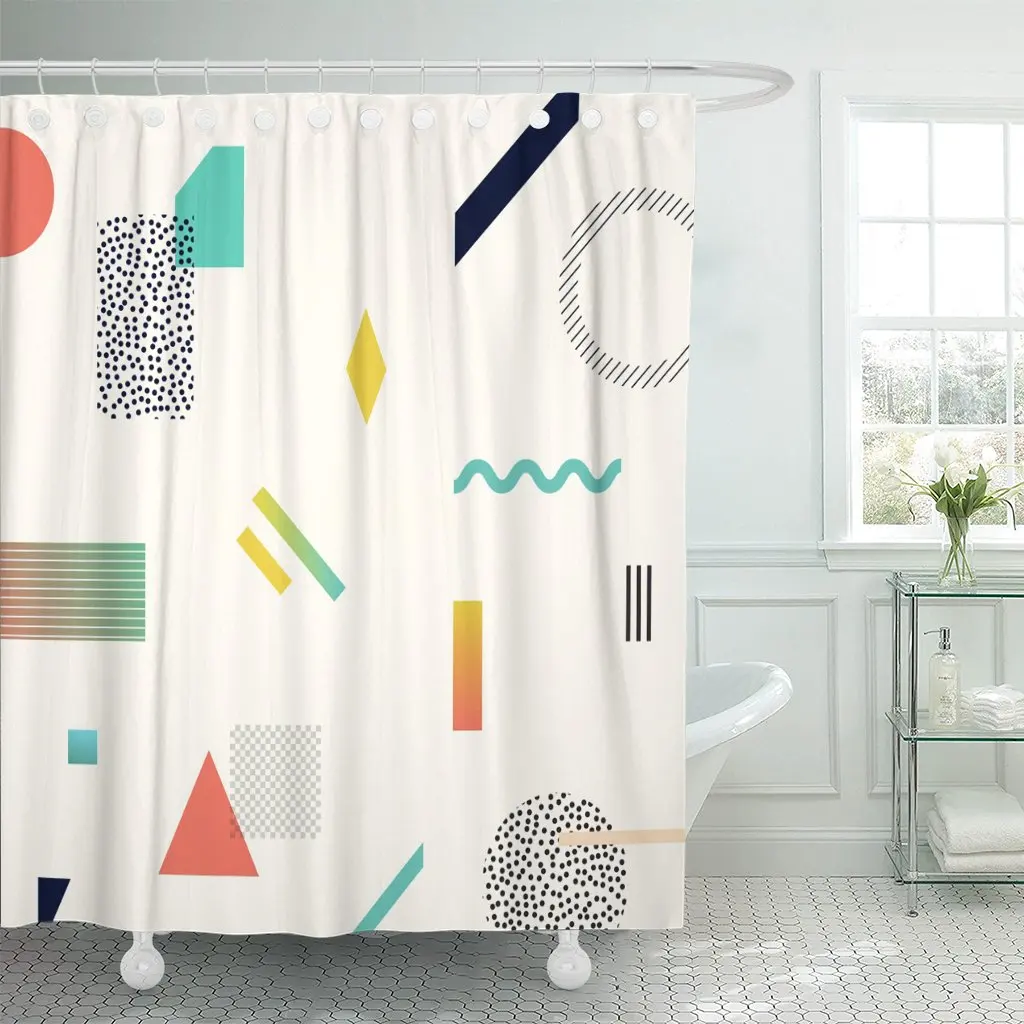 Цветная абстрактная хаотическая Геометрическая Минималистичная футуристическая подходящая для коллажа занавеска для душа Водонепроницаемая Полиэстеровая ткань 72x78