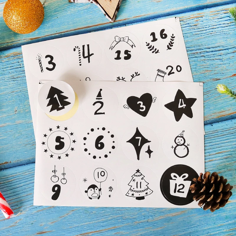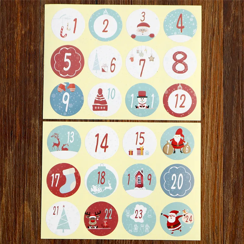 Наклейки рождественские, с обратным отсчетом цифр, 120 шт.