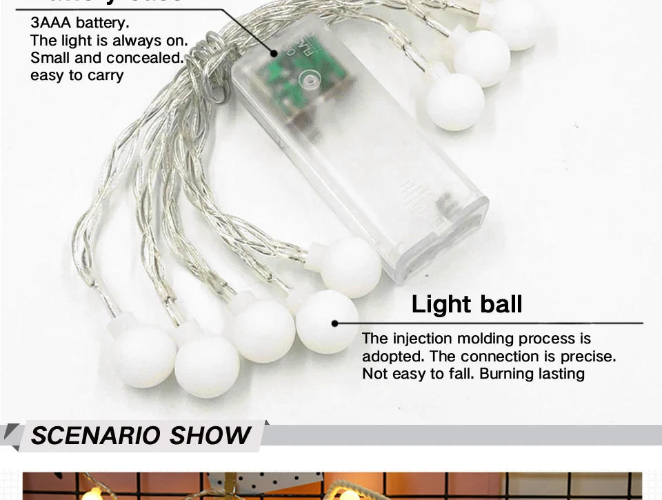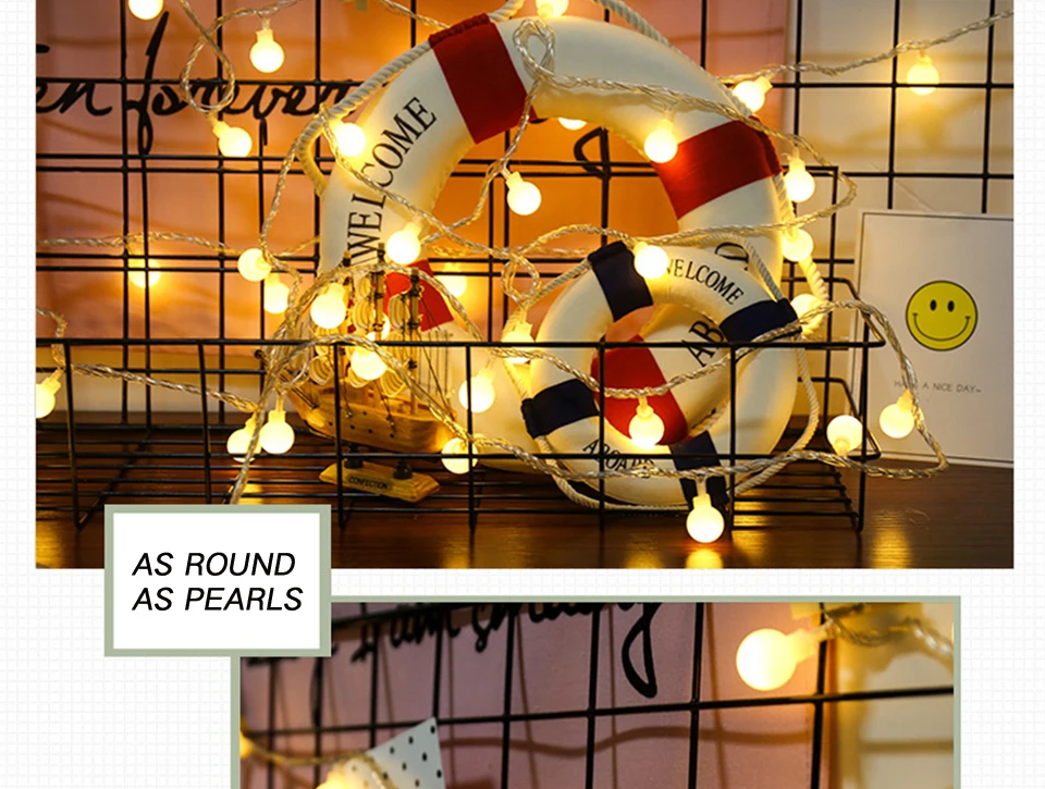 Новинка, 2 м, 3 м, 6 м, светодиодная гирлянда с шариками, сказочные гирлянды для рождественской елки, свадьбы, дома, украшения в помещении, водонепроницаемые, на батарейках