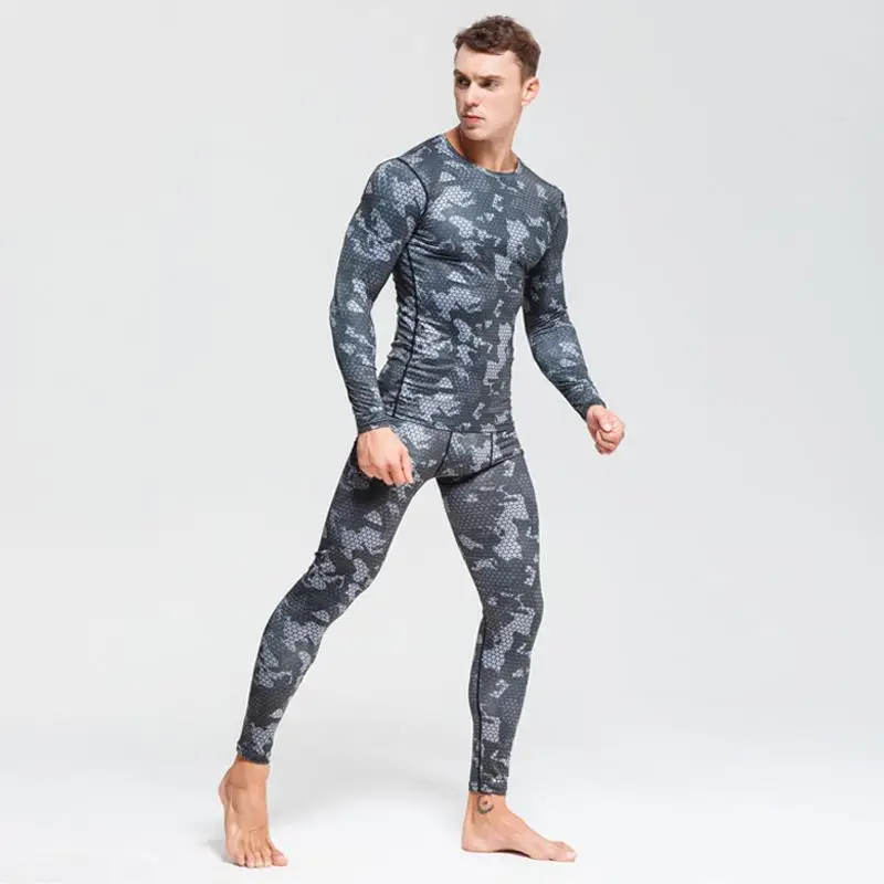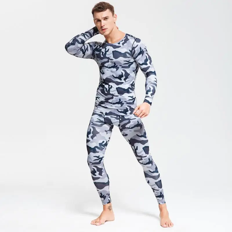 Мужское термобелье, комплект из 2 предметов, камуфляжный спортивный костюм ММА, футболка для бодибилдинга, XXXL