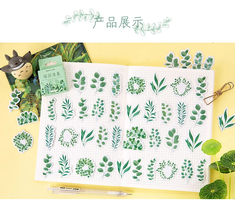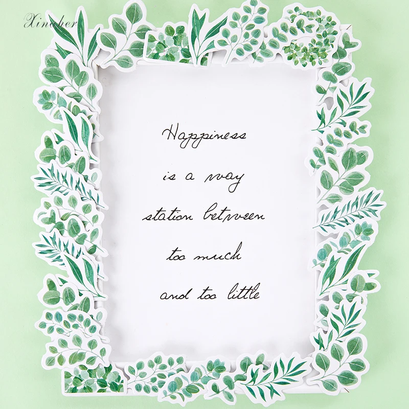 XINAHER 45 шт./кор. зеленых листьев растений мини декорации бумажные наклейки пакет DIY дневник декоративные наклейки альбом для скрапбукинга