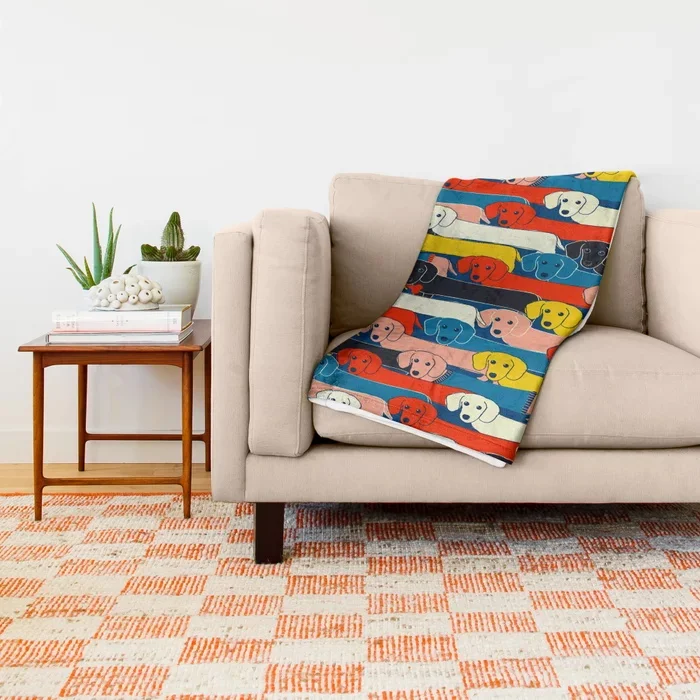 Одеяло с рисунком таксы для дивана, милый детский дизайн, одеяло с цветными собаками, рождественские украшения для дома, одеяло на заказ