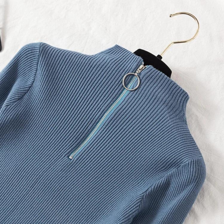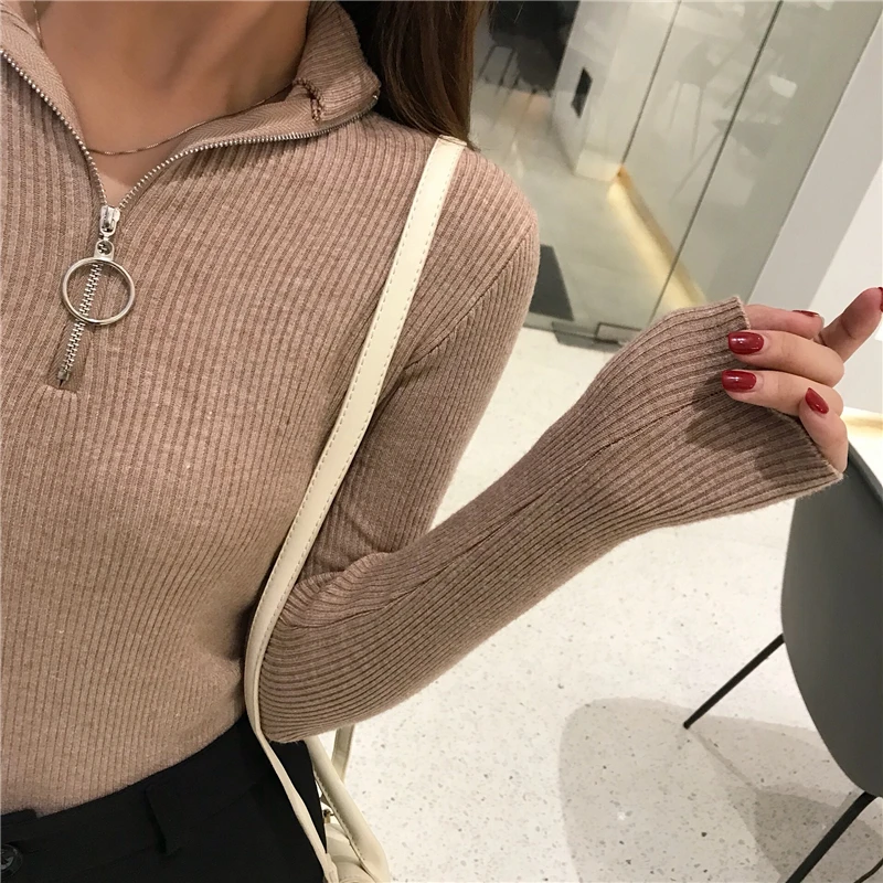 Женский свитер с высоким воротником, розовые свитера на молнии, Осень-зима 2022
