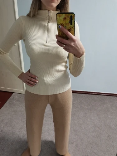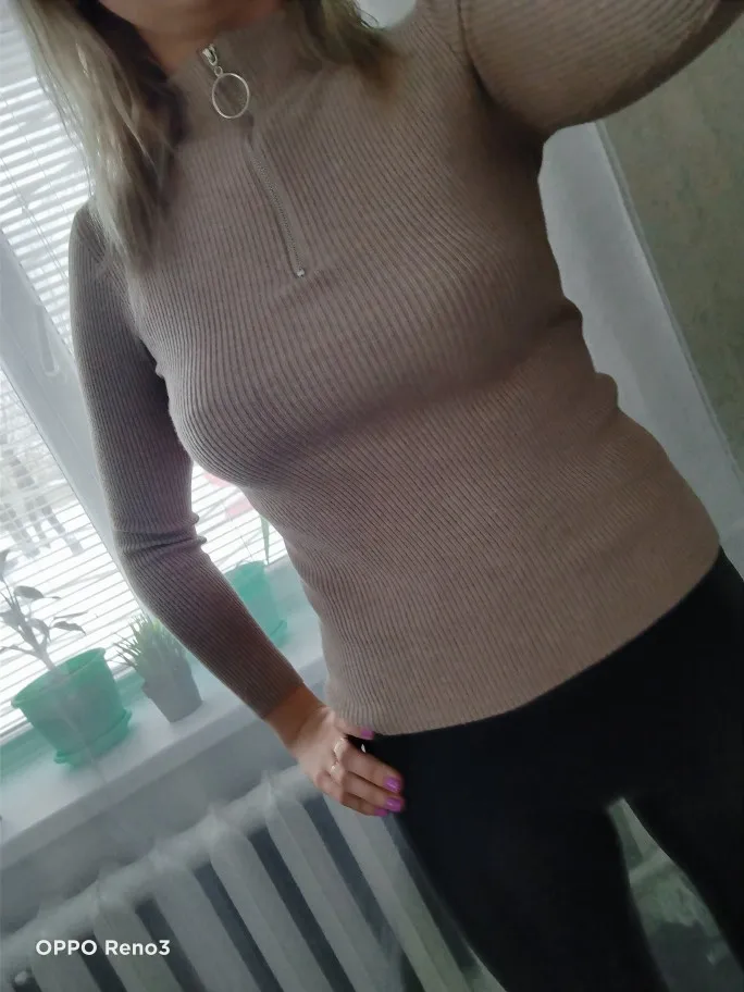 свитерок классный мягенький тянется хорошо, на о.г.97 см отлично,под верхнюю одежду прям замечательно,чтоб не широкий,а в обтяжку, доставка очень быстрая, спасибо продавцу