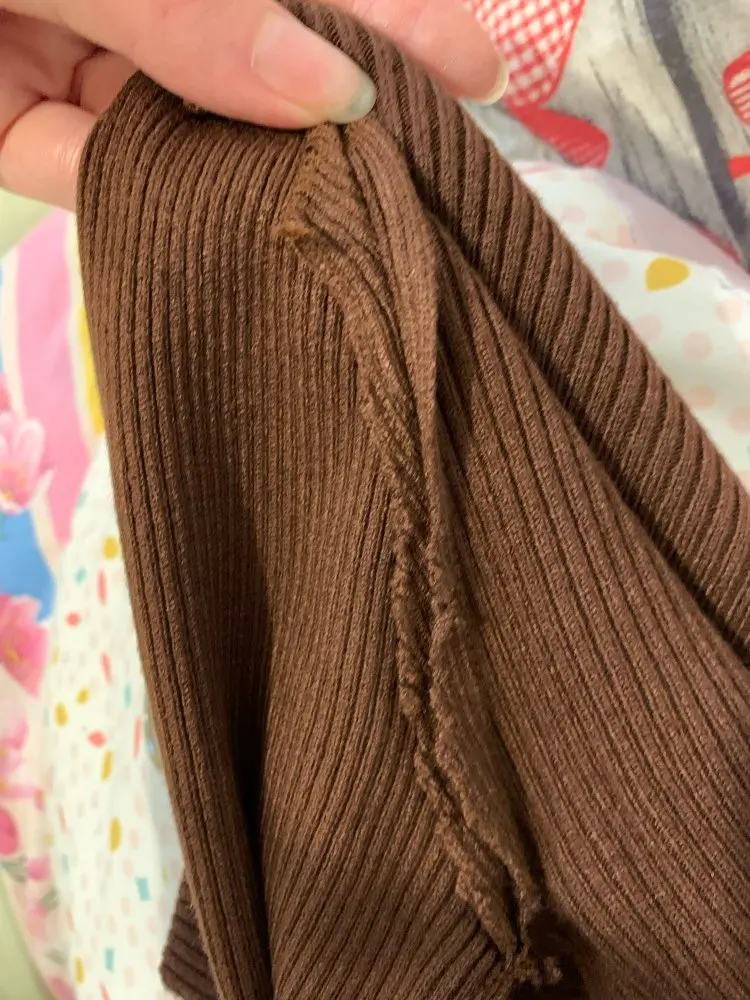Получила товар. Состояние кофты идеальное, как показано на картинке в описание. Нитки не торчат, горлышко ровное(за что больше всего переживала). Размер подошёл, сидит на мне идеально. Очень понравилась, буду заказывать ещё, только другого цвета. Спасибо огромное!