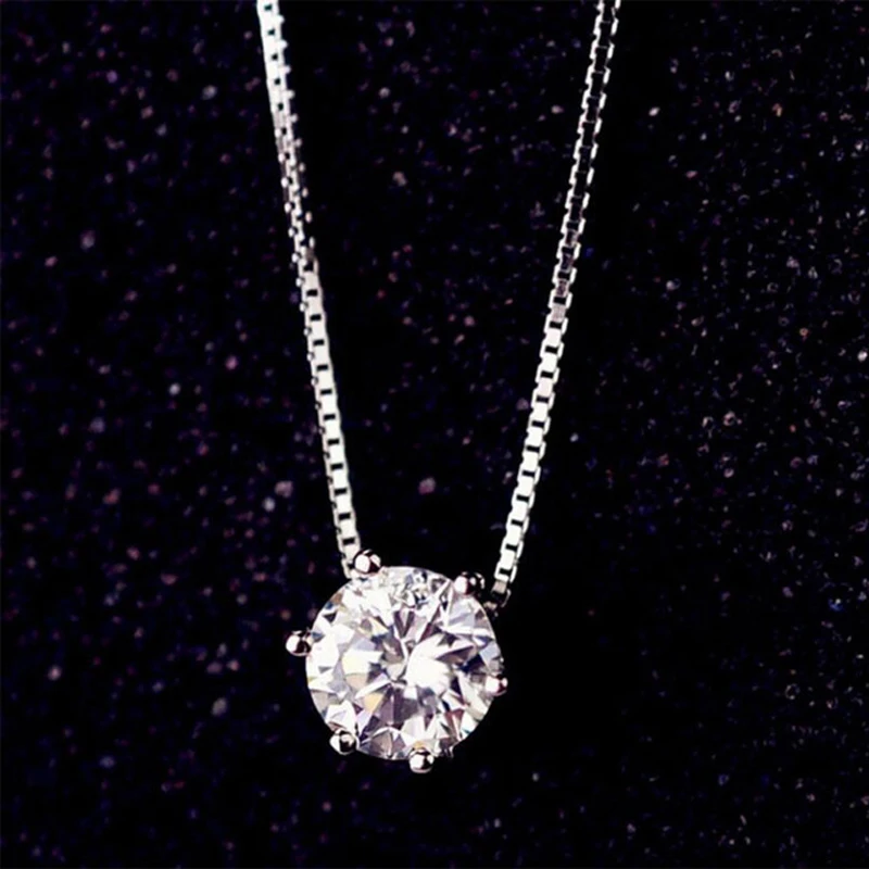Ожерелье из серебра 100% пробы с натуральным муассанитом, 1 карат