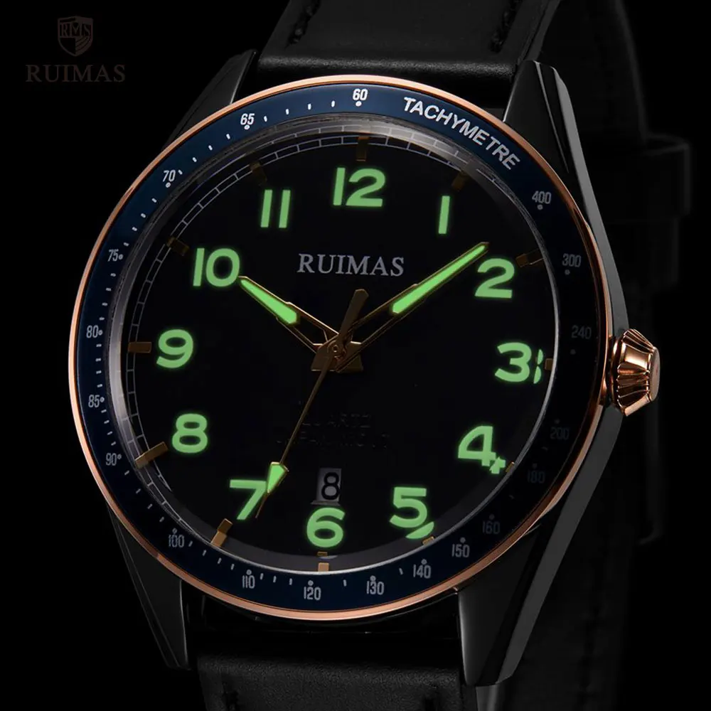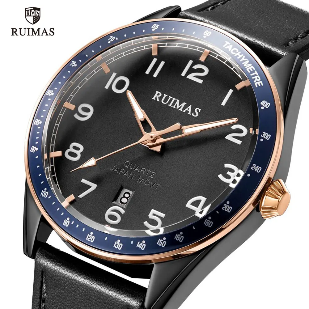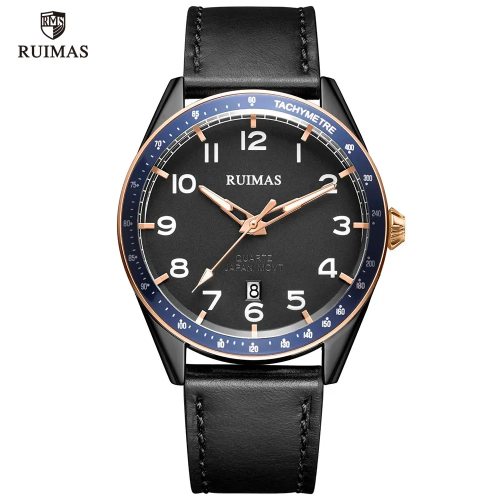 Мужские часы RUIMAS, Роскошные Кварцевые часы с кожаным ремешком, мужские военные спортивные наручные часы 573