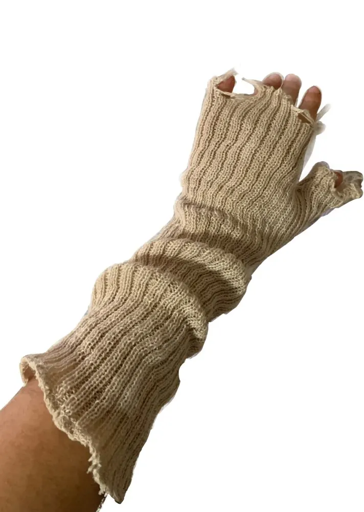 Перчатки унисекс, вязаные, черные, серые, бежевые, с кружевными манжетами, без пальцев, женские, мужские, до локтя