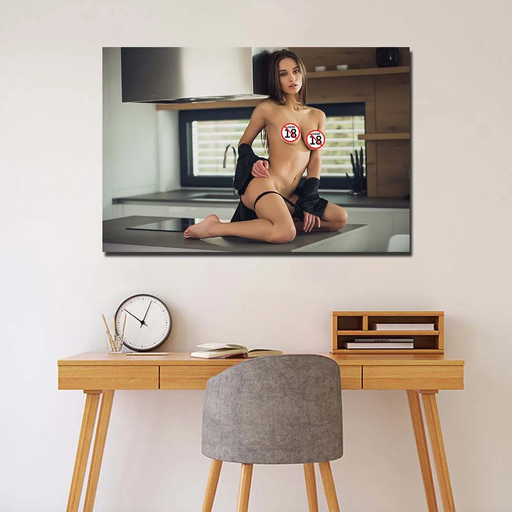 Сексуальная девушка в Кухня фото Современные настенные художественные плакаты и принты холст картины для декора комнаты
