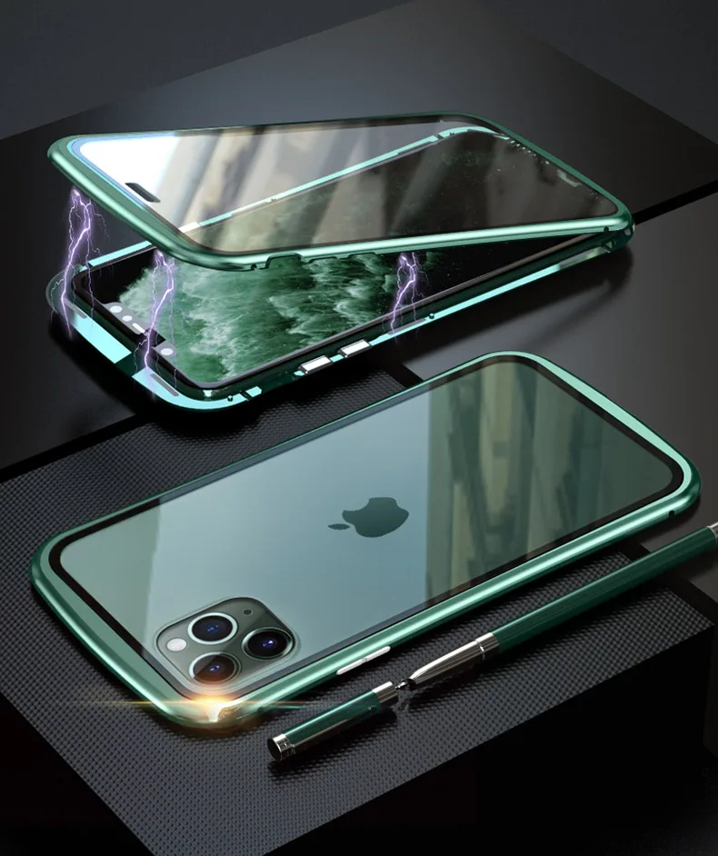 Магнитный чехол для iphone 11 pro max, 11 pro max, с полным покрытием, с закаленным стеклом