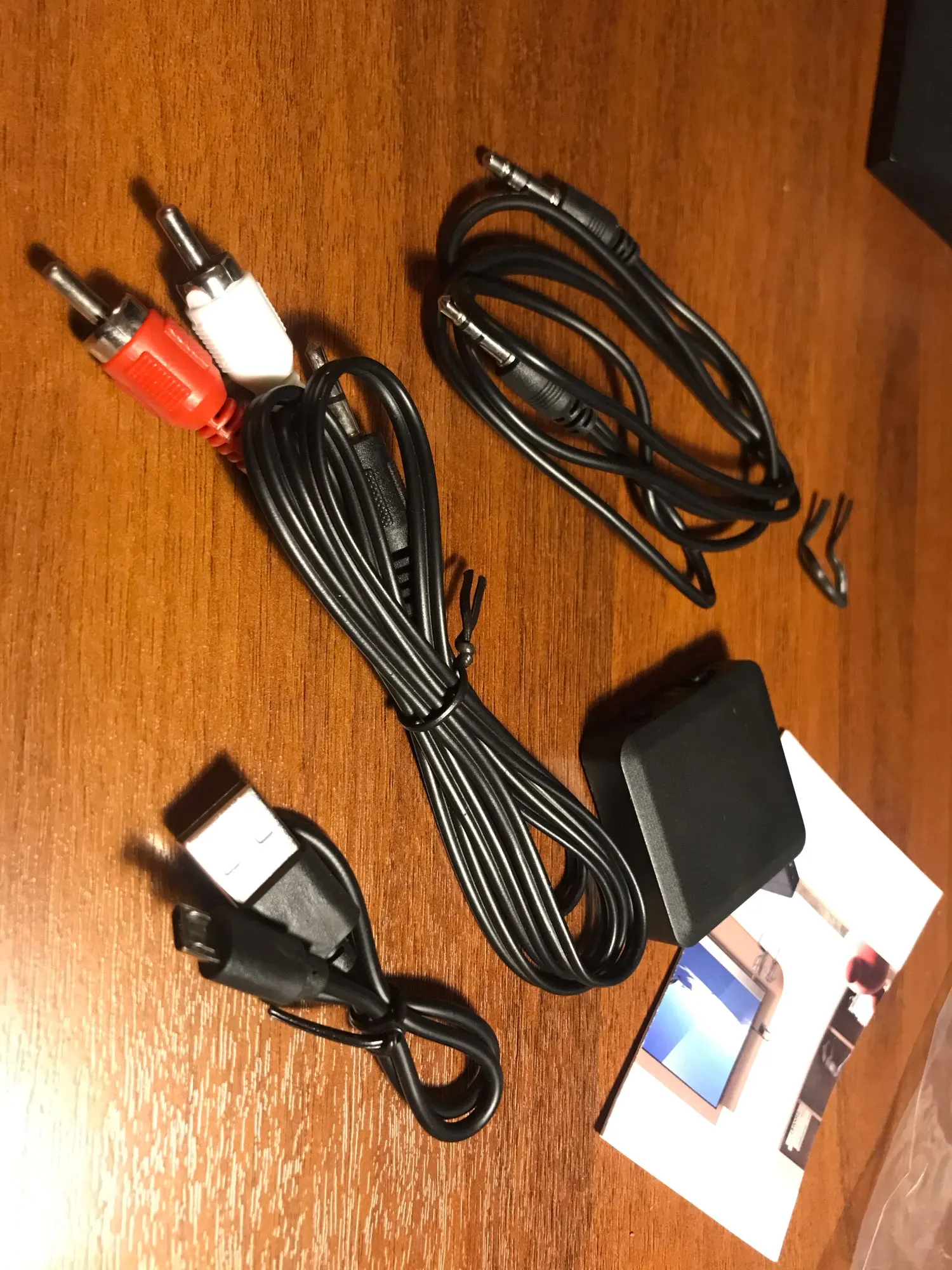 Шел около 2 месяцев. Описание совпадает, правда я думал что размеры его будут чуть больше. В комплекте к приемнику шли три кабеля: jack 3.5 - jack 3.5, колокольчики - jack 3.5, и кабель питания micro usb. Покупкой доволен.