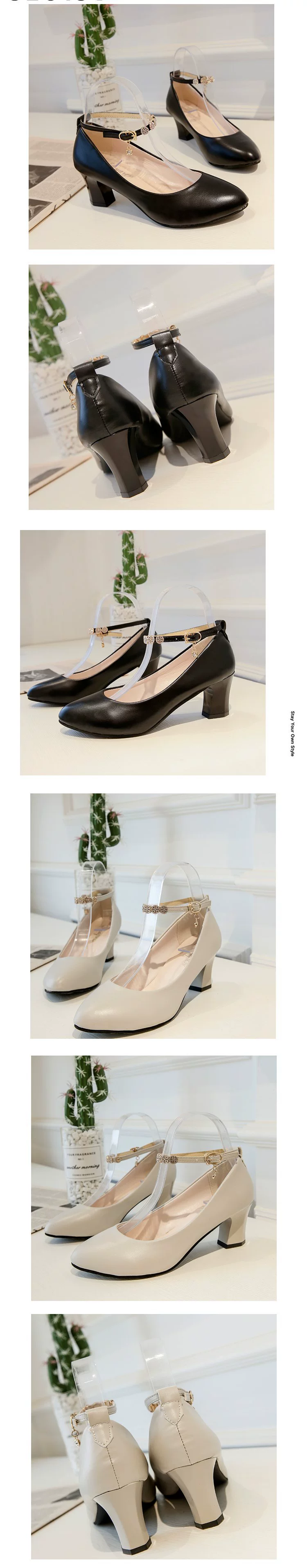 Женские тонкие туфли на высоком квадратном каблуке с круглым носком; Женская обувь; Простые элегантные туфли-лодочки; Черные офисные туфли; 6 см