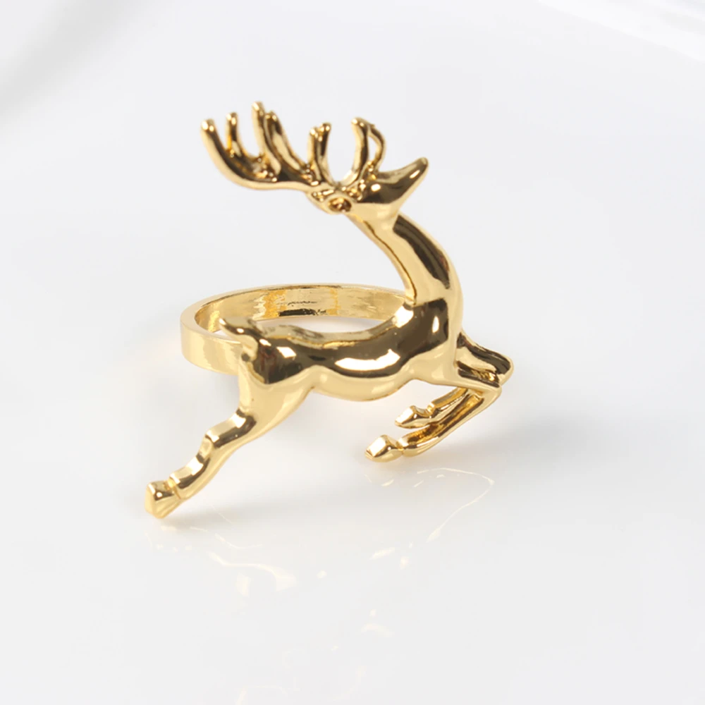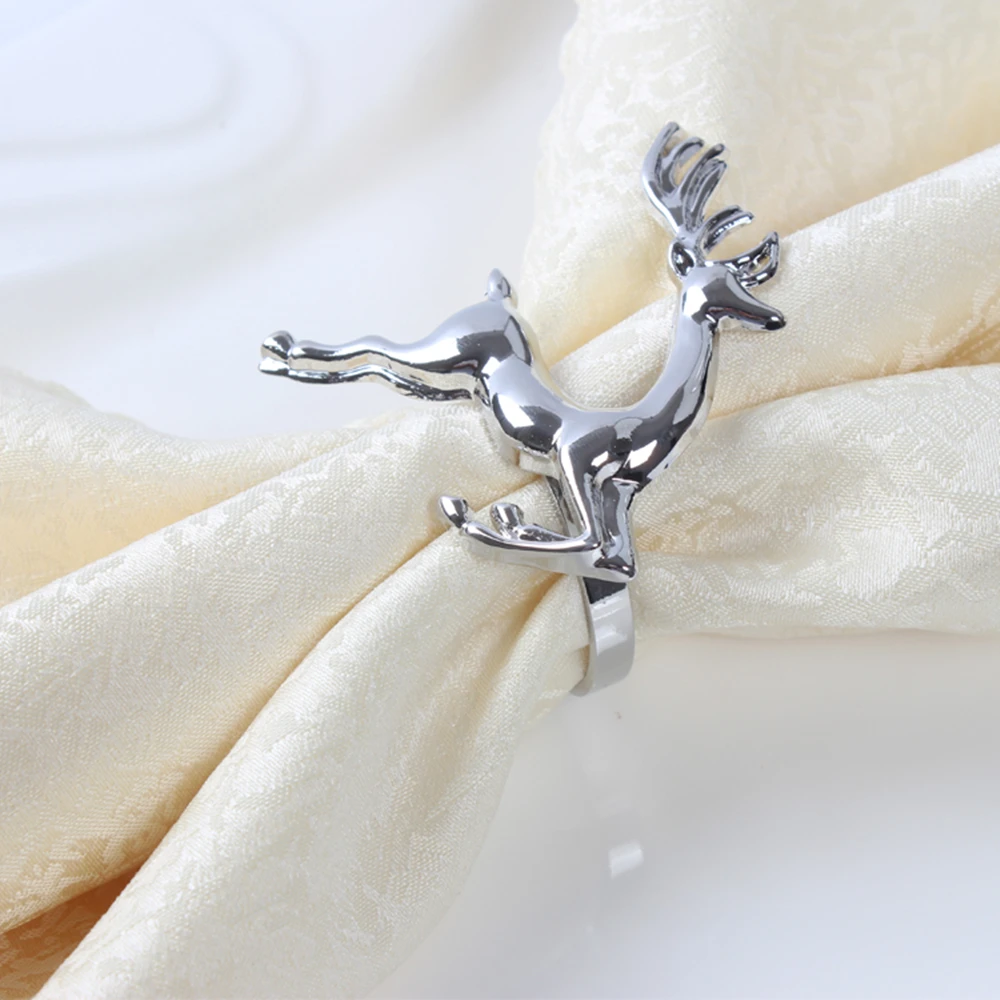 A 12 шт.лот, кольца для салфеток с рождественским оленем, серебристые, золотистые, из сплава, держатель для салфеток, застежка для отеля, свадьбы, украшения стола, кольцо с Сантой