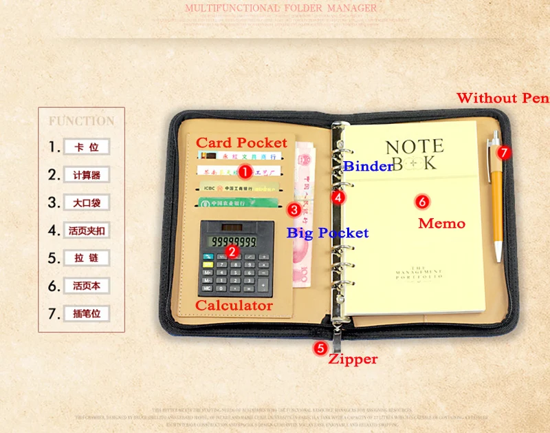 Очень красивый внешний вид и интерьер. Но разочарованный уровень качества, кольцо не закрывает полностью (небольшое пространство между ними) и другие, когда Я поворачиваю бумагу, она остается висящей на листе, он мгновенно повреждает листы. Чтобы открыть кольца, я должен закрыть немного portofolio, бар немного заблокирован из-за молнии. Количество листов не соответствует описанию
