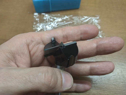 Пришло довольно быстро. На вид выглядит основательно, рабочие кромки без сколов, шлифованные. Сверло в пластиковой коробочке. В работе не пробовал.