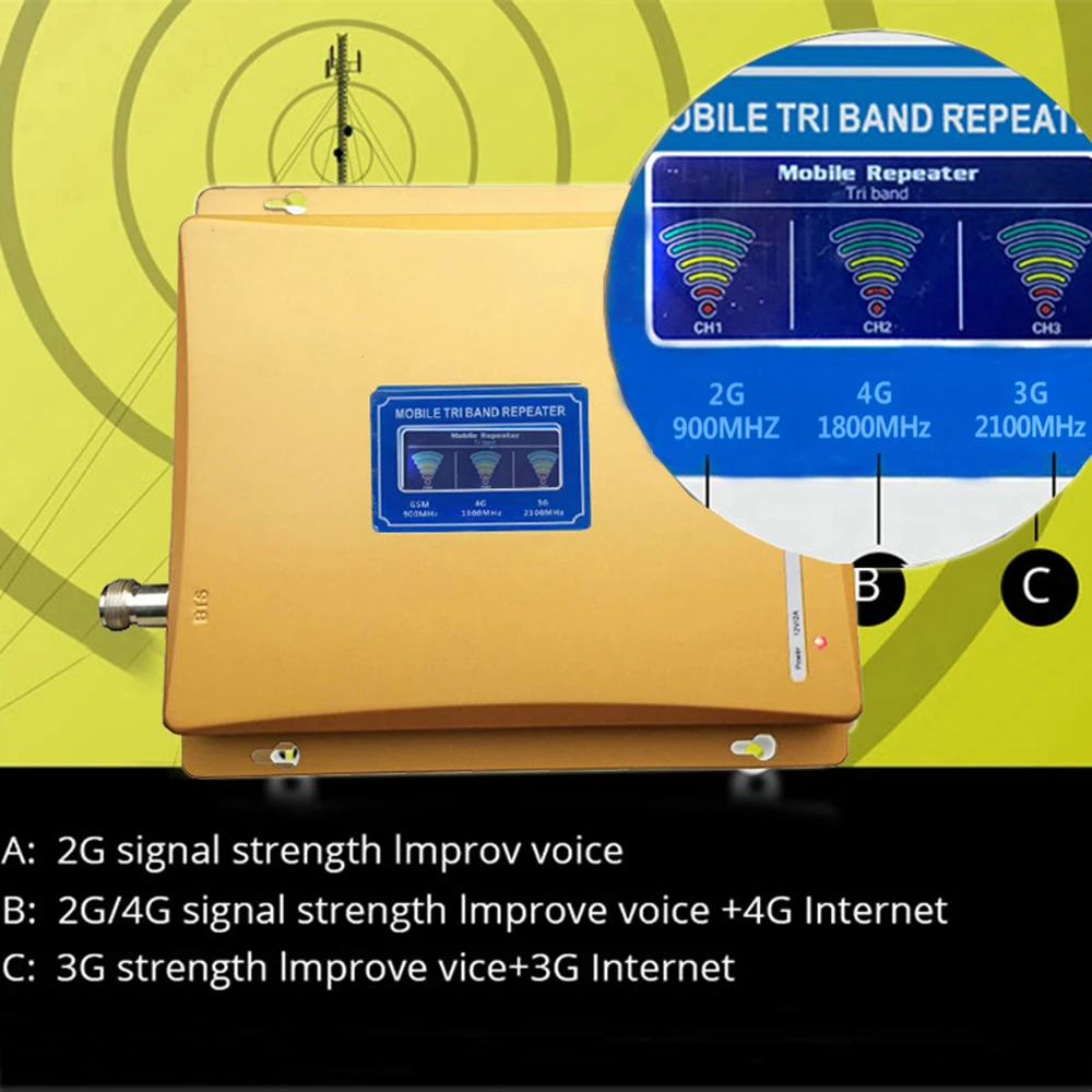 Ретранслятор сигнала сотовой связи gsm 2100 мгц 900 МГц 1800 МГц трехдиапазонный усилитель сигнала 2G 3G 4G LTE FDD GSM WCDMA усилитель сигнала