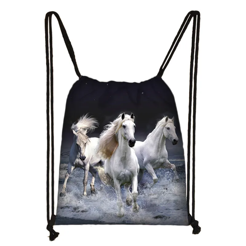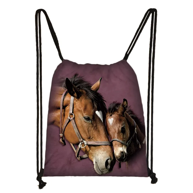Женская сумка на шнурке с животным принтом лошади, модная сумка для хранения для путешествий, рюкзак для девочек, сумка для книг, держатель для обуви