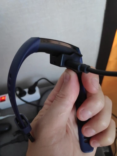 работает, разве что microUSB коннектор с отклонением в 1мм от своего положения и утоплен в корпус. Вставил в него кабель и не вынимаю, браслет заряжается