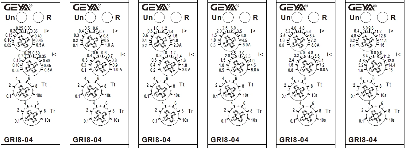 GRI8-01 защита от перегрузки по току GRI8-02 защита от недостаточного тока GRI8-03 защита от перегрузки по току или недостаточного тока GRI8-04 защита от перегрузки по току и недостаточного тока