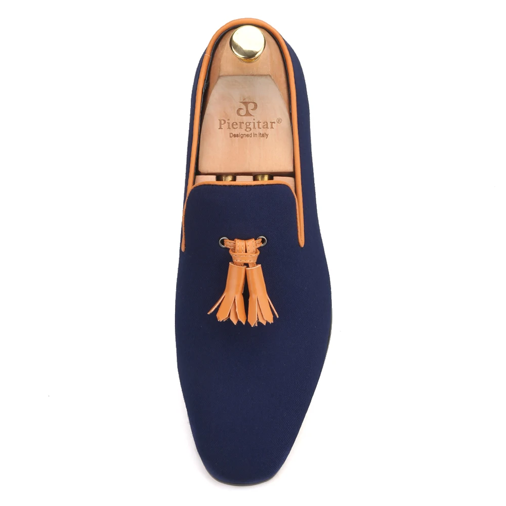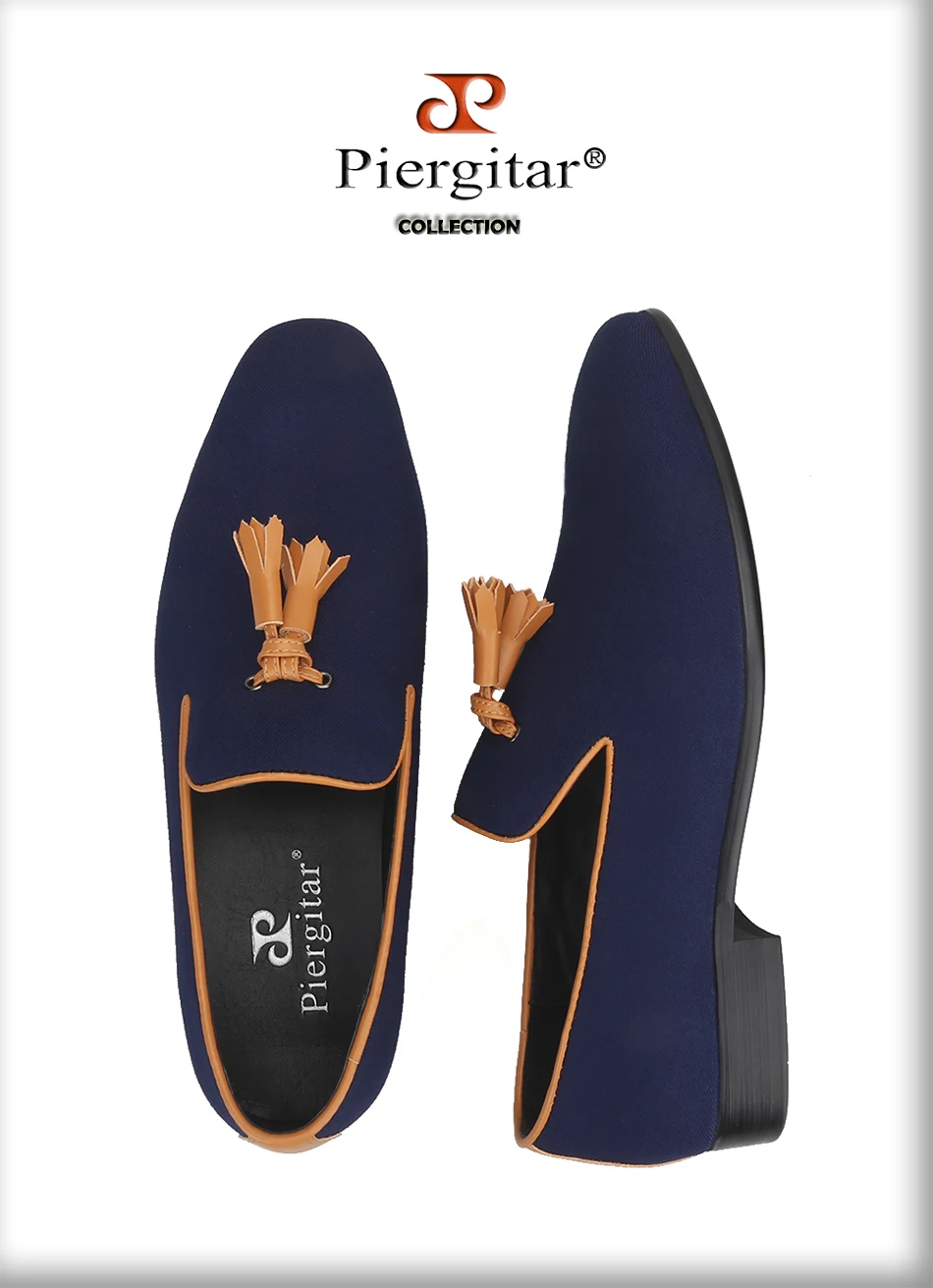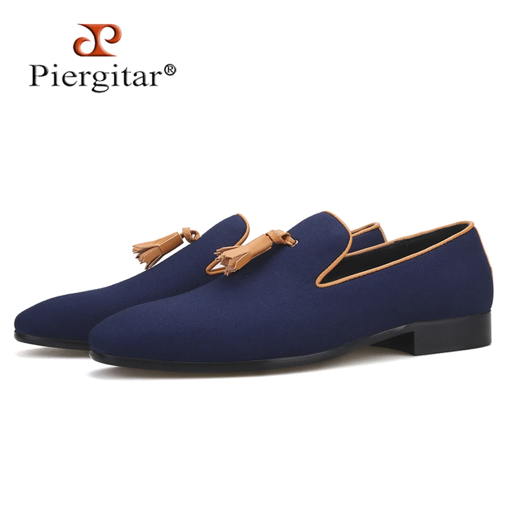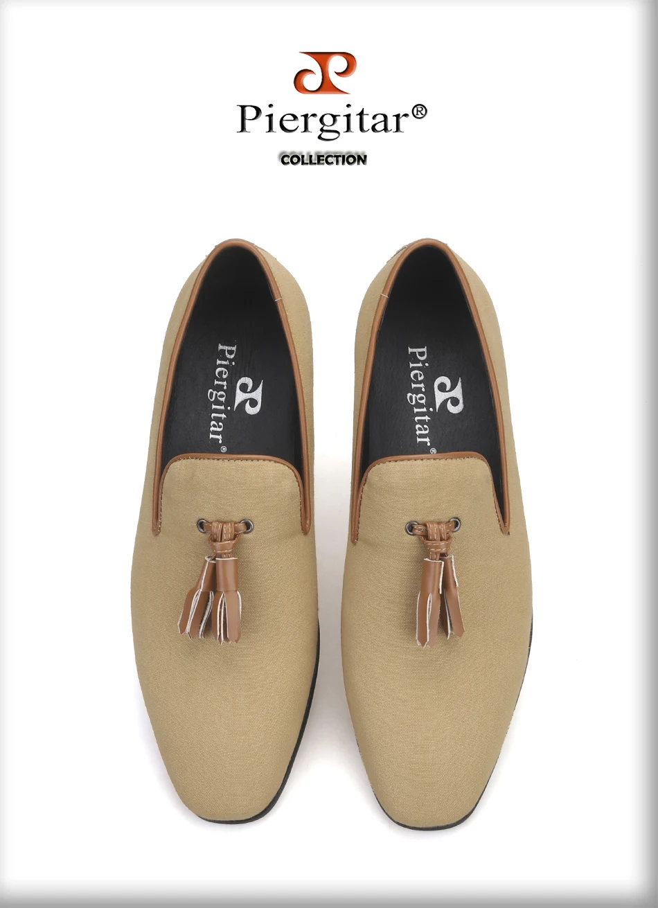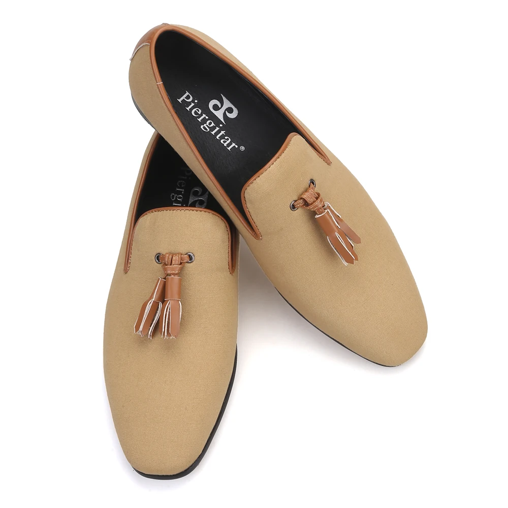 Мужские парусиновые туфли Piergitar, кожаные лоферы ручной работы с кисточками, для свадьбы и вечерние, курительные тапочки, два цвета