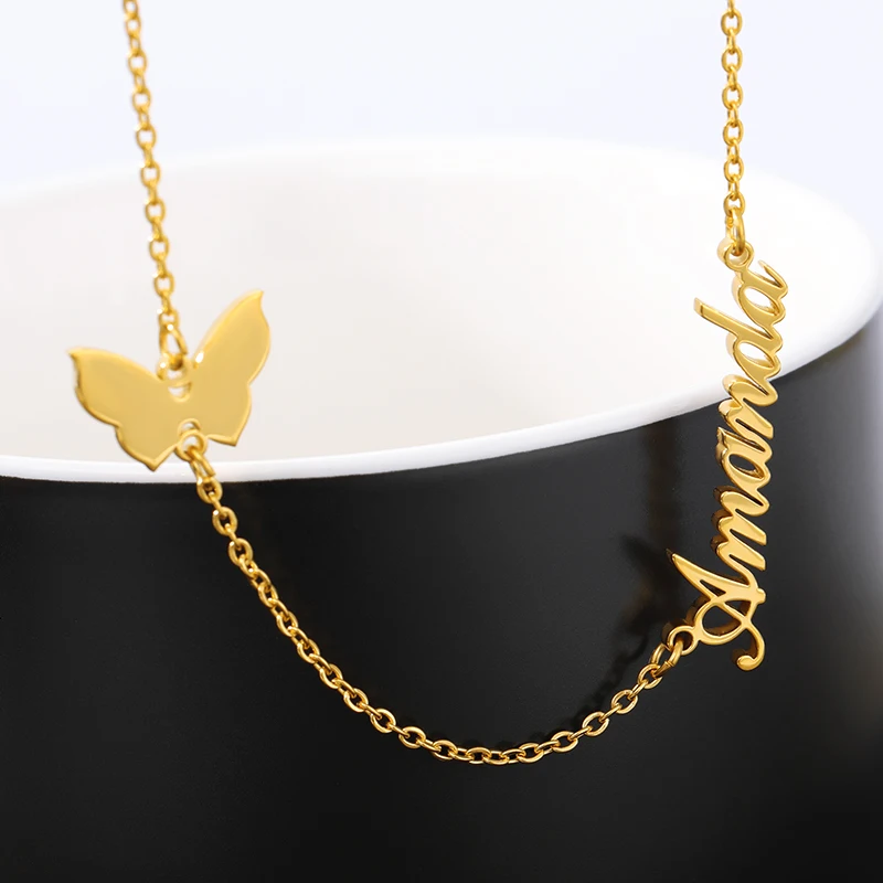 Модные ожерелья-бабочки с именем для женщин, именная табличка с буквами на заказ, сердце, корона, символ, очаровательное колье-чокер, ожерелья