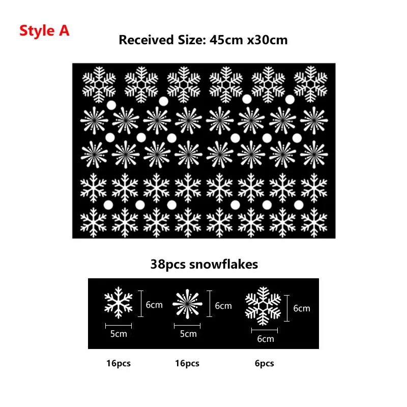 Получить размер: 45x30 см (38 шт./лот) Каждая Снежинка отделена. Если вы порвете его, вы можете наклеить его напрямую и смешать его свободно. Характеристики: экологически чистый, съемный, никаких следов не осталось, не может использоваться на стене