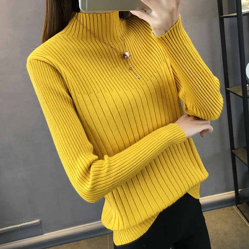 Свитер женский трикотажный с высоким воротником и длинным рукавом, Осень-зима 2020