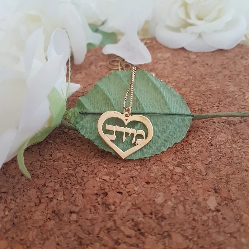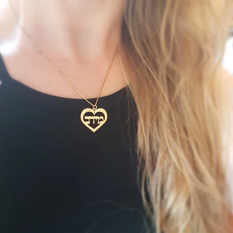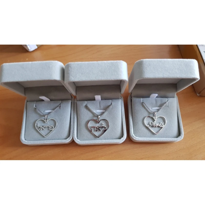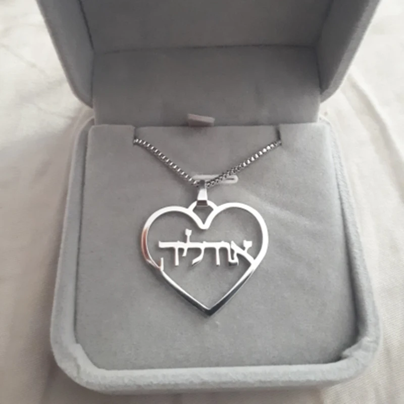 Ожерелье из нержавеющей стали под заказ с арабским ивритом именем и сердцем, цепочка в коробке, персонализированная подвеска с английскими буквами и именем, еврейские ювелирные изделия