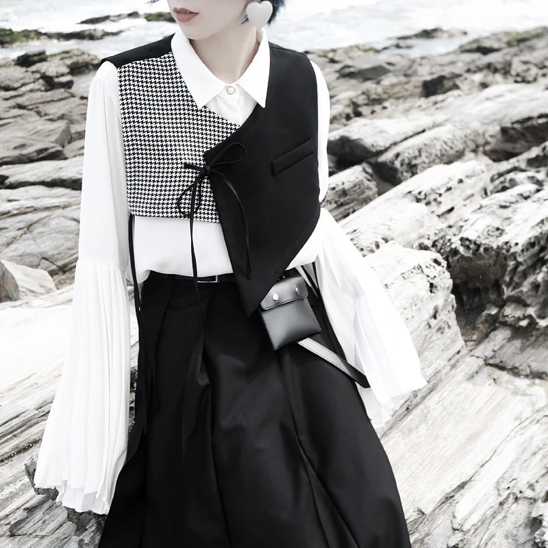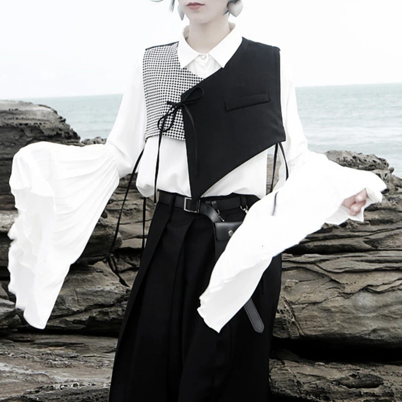 Женский жилет с полосками TWOTWINSTYLE, Осенний жилет с V-образным вырезом, без рукавов, на шнуровке, 2020