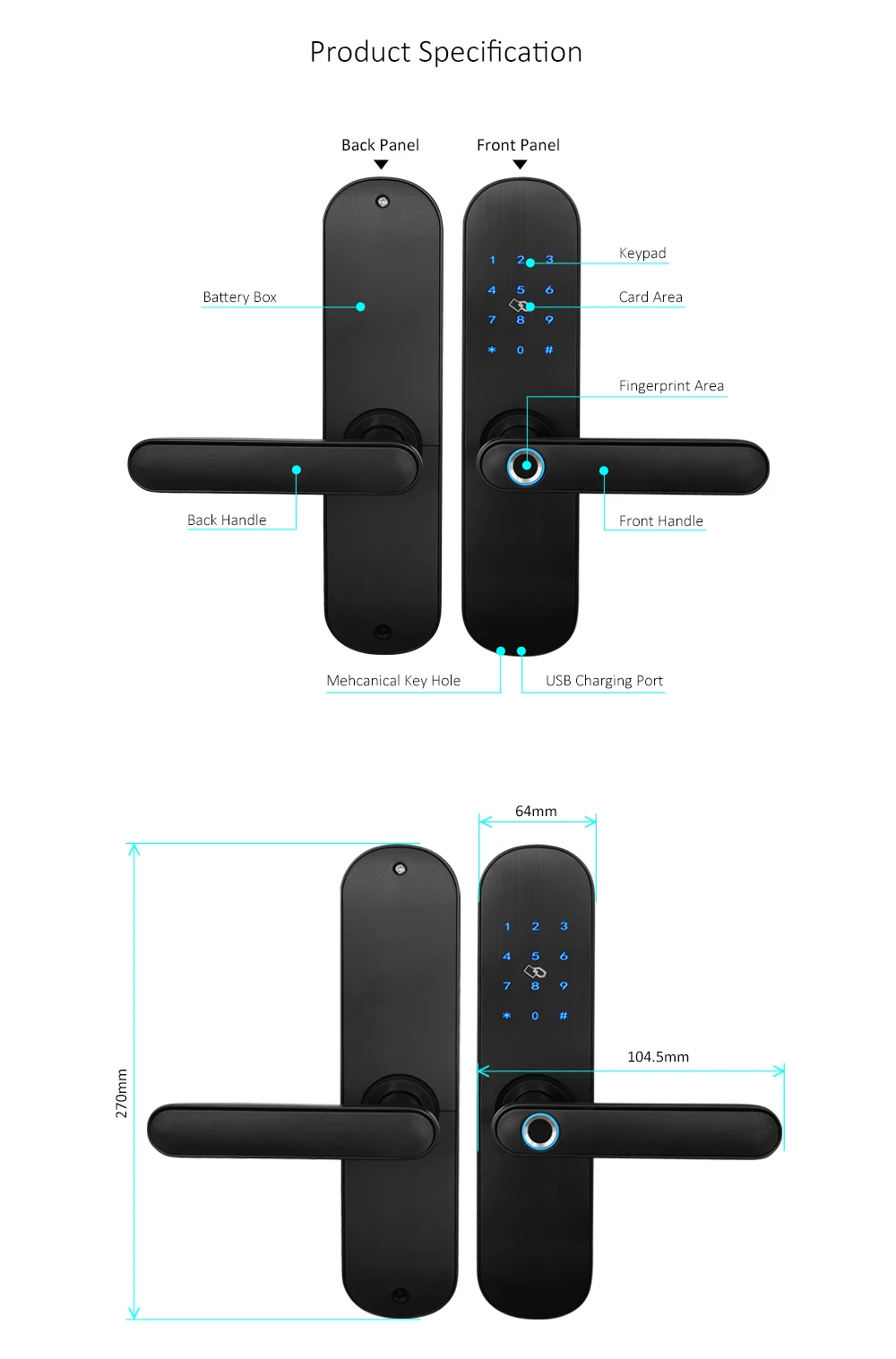 Поддержка ввода виртуального пароля Anti-Peeping, ввод случайного пароля до или после правильного пароля, что значительно защищает вашу дверь.