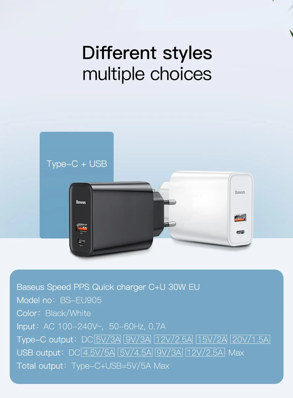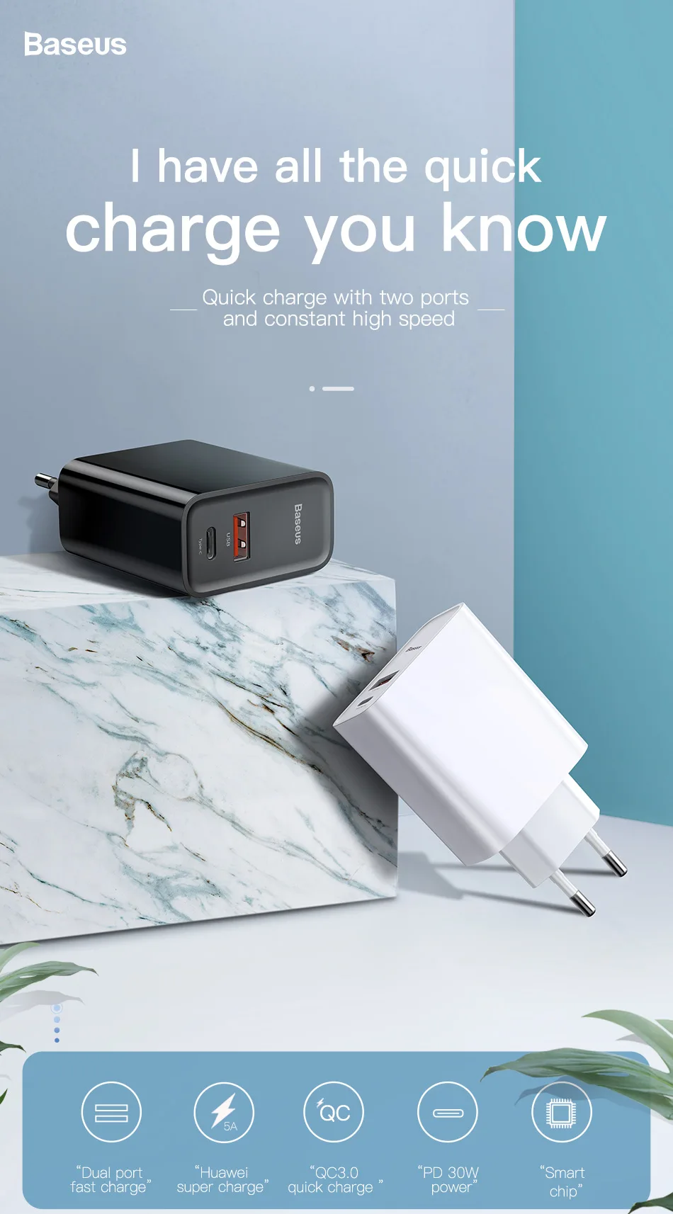 NameBaseus 30W Speed Quick Charge 2 Ports USB Charger