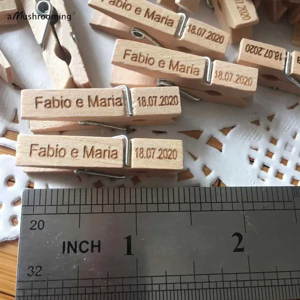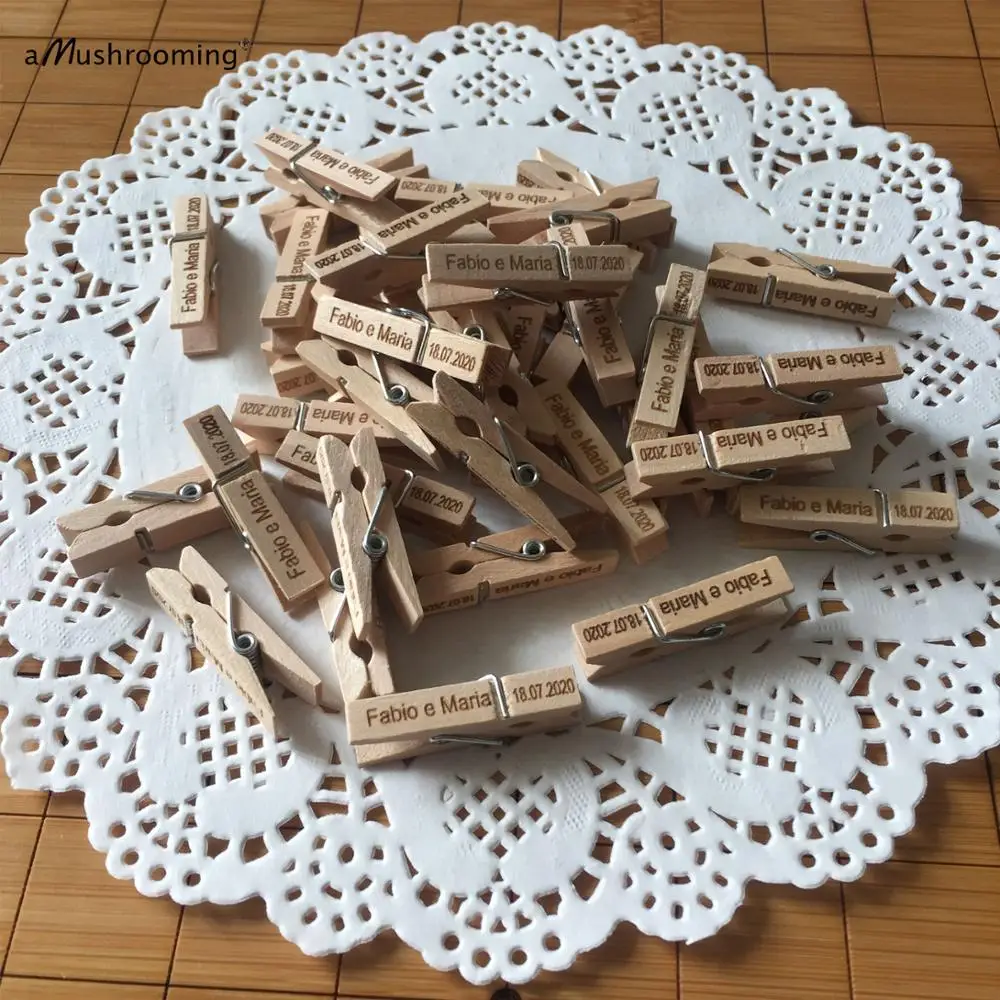 Персонализированные Мини прищепки для свадебного душа x100, Деревянные прищепки с вашим именем и датой, декор для стен