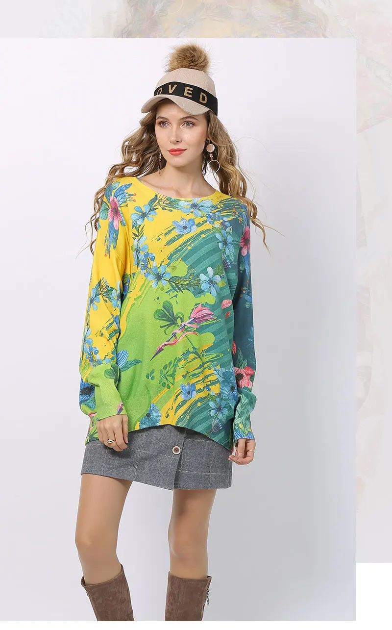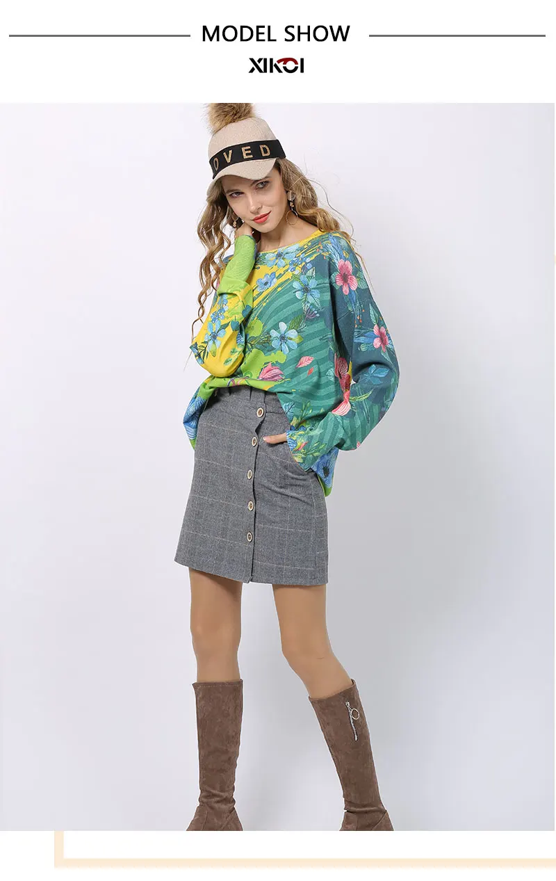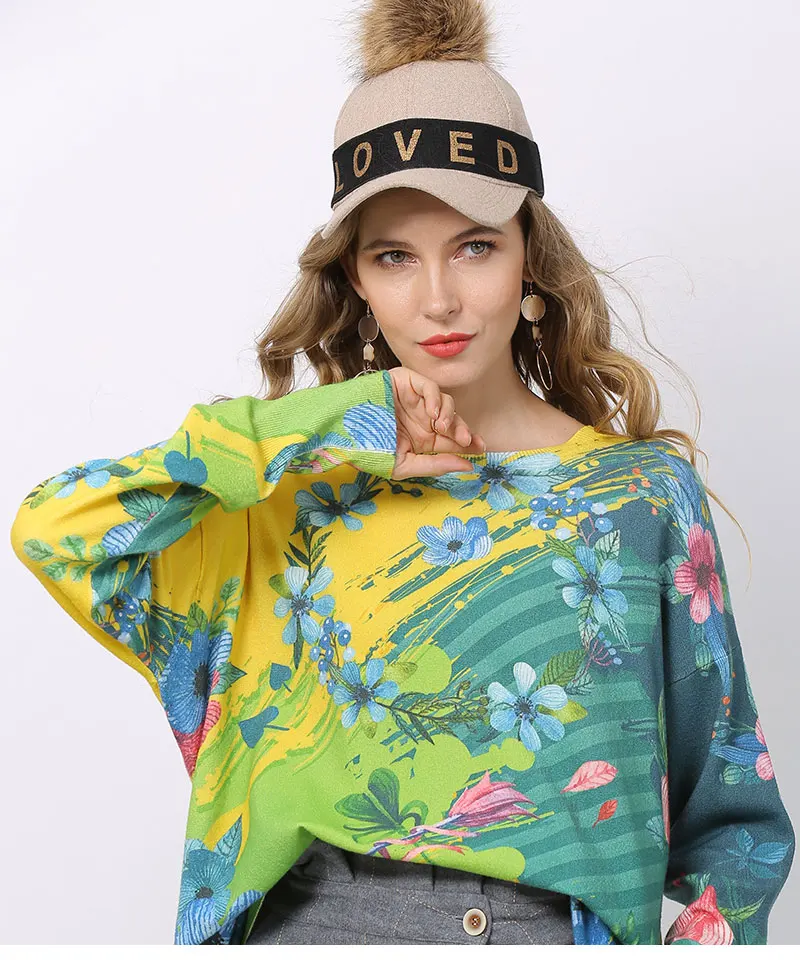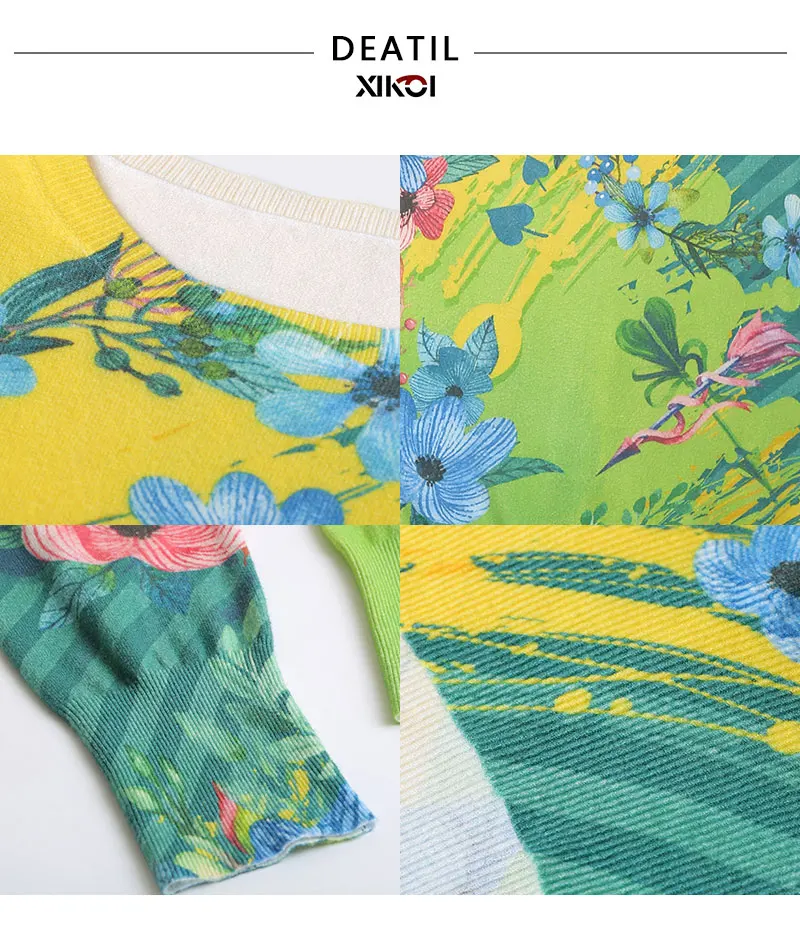 Женский вязаный свитер с цветочным принтом XIKOI, теплый пуловер оверсайз с круглым вырезом, Высокоэластичный джемпер для зимы