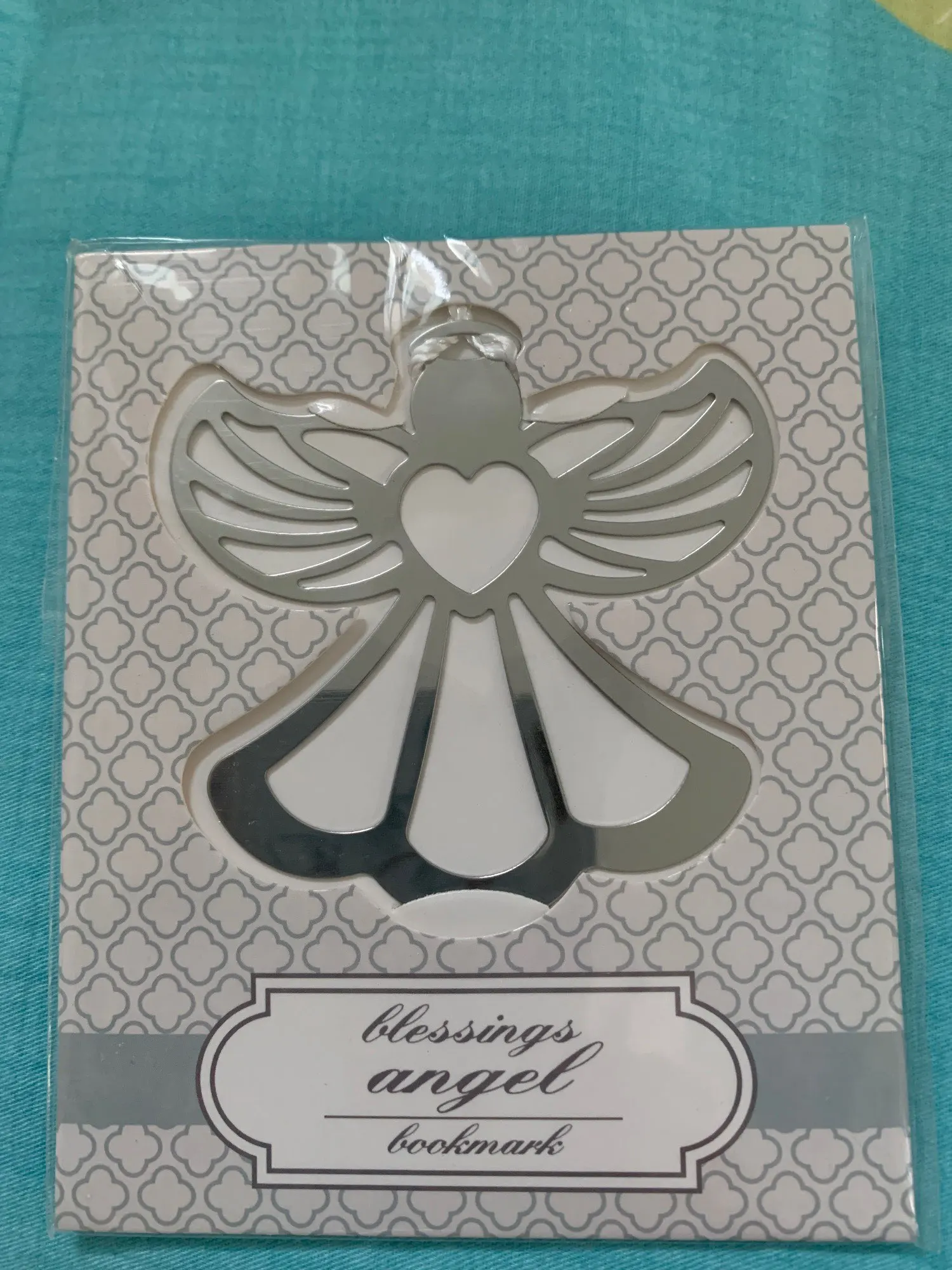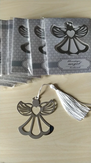 (20 шт.лот) Бесплатная доставка + благословения металлический Ангел Закладка с красивой Белой Кисточкой детский сувенир для крещения Свадебные сувениры