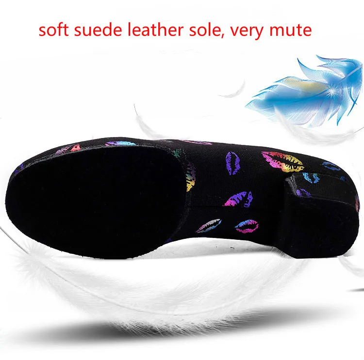 Женские танцевальные туфли, черные, красные, с принтом в виде губ