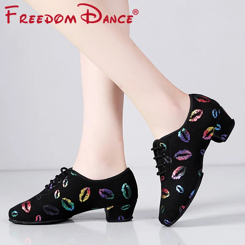 Новые кроссовки; Обувь для латинских танцев; Женская обувь для учителя; Обувь на каблуке 5 см с цветными губами; Туфли-оксфорды на шнуровке; Обувь для бальных танцев, сальсы; Обувь для девочек