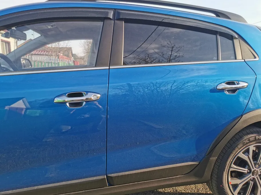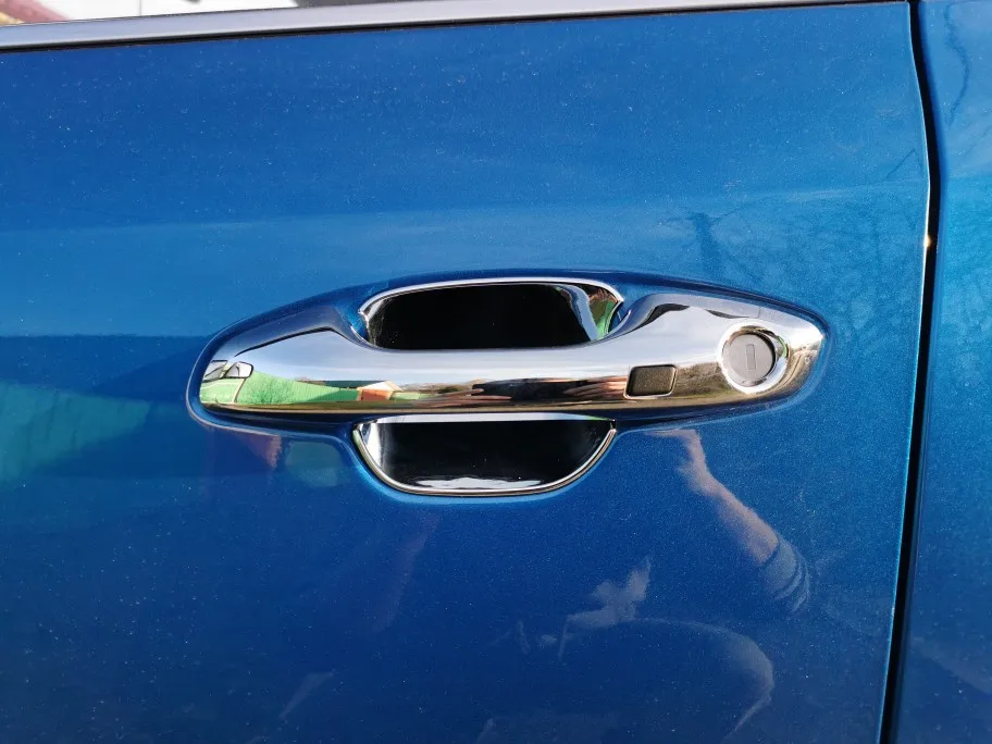 Наклейка на дверную ручку для Kia Rio 4 X-line 2017, 2018, 2019, 2020, хром, углеродное волокно