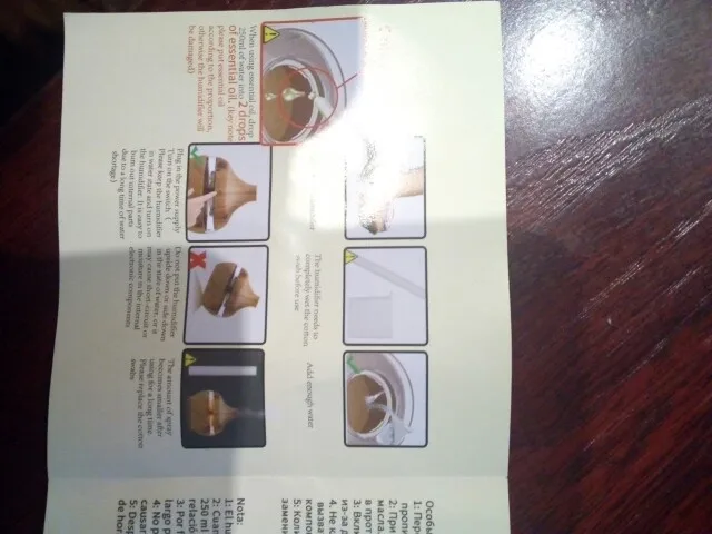 Доставили быстро, забрала поздно))) Все в порядке, все работает Набрала воды до бесцветной части и пару капель масла, особо пока не Ощущается, все таки это больше для одной зоны, допустим возле кровати можно поставить, или на рабочей зоне, но всю квартиру он не освежит явно А так все хорошо