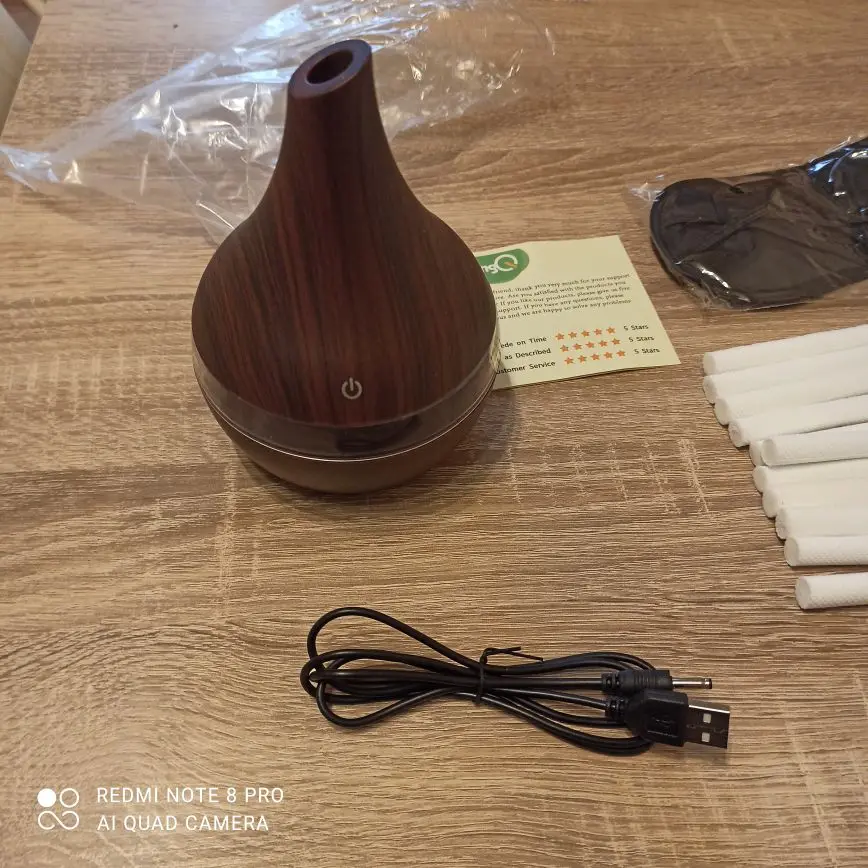 аромадиффузор хороший, заказ шел где то 1.5-2 месяца. упакован хорошо, но коробка все равно помятая,как будто изночально такая и была. и USB-шнур не рабочий. думала что аромадиффузор сам не рабочий, благо был шнур от массажера, решила попробывать и он подошел. из за этого 5-, но с минусом.Кстати, спасибо за подарочек.