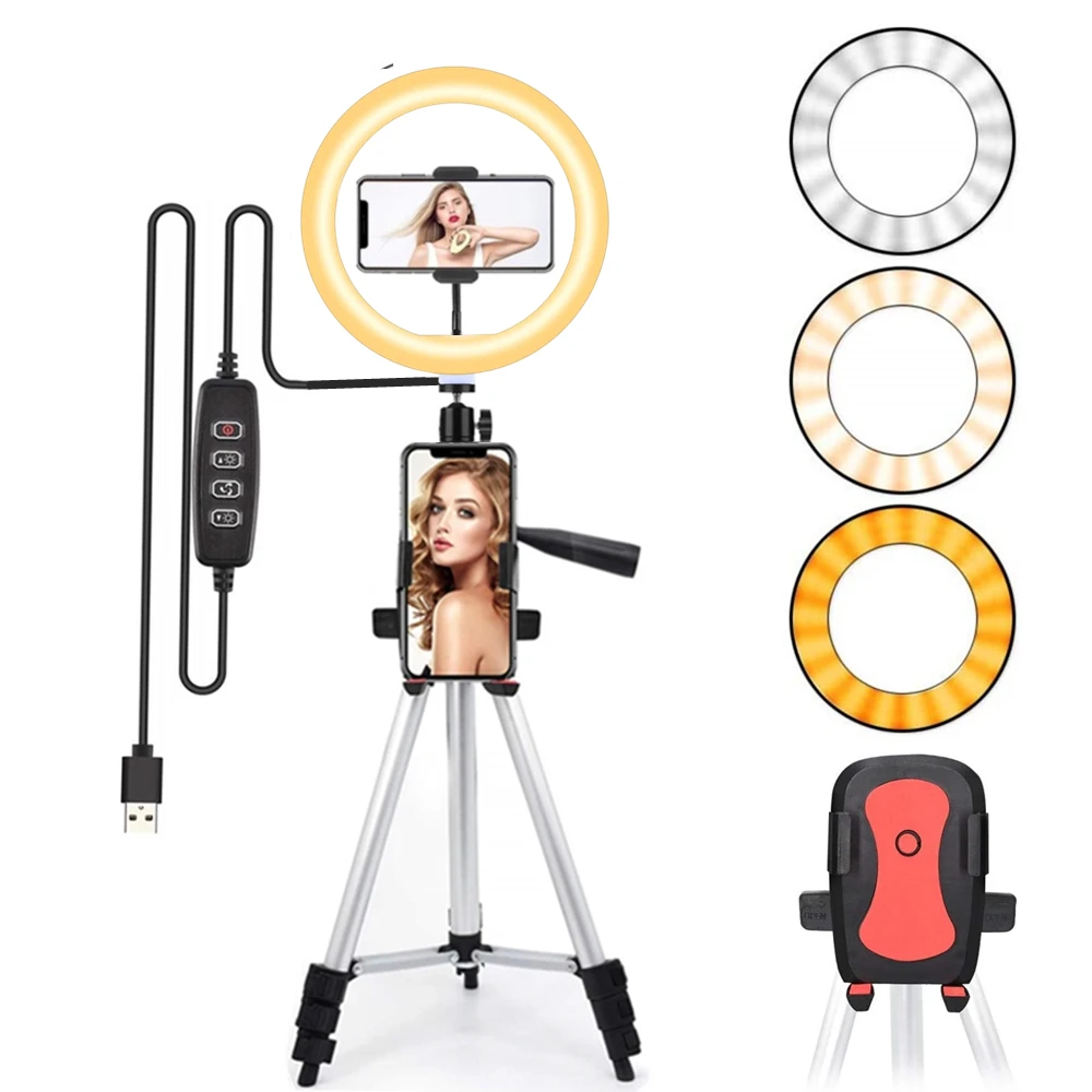 Светодиодное кольцо для селфи, штатив с лампой, кольцо для селфи, для телефона, Youtube, освещение, фотография, камера, зажим, держатель, оборудование