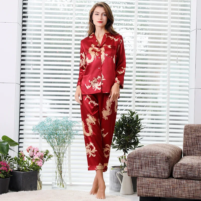 Пара шелковой атласной пижамы пижамный комплект пижама с длинными р...