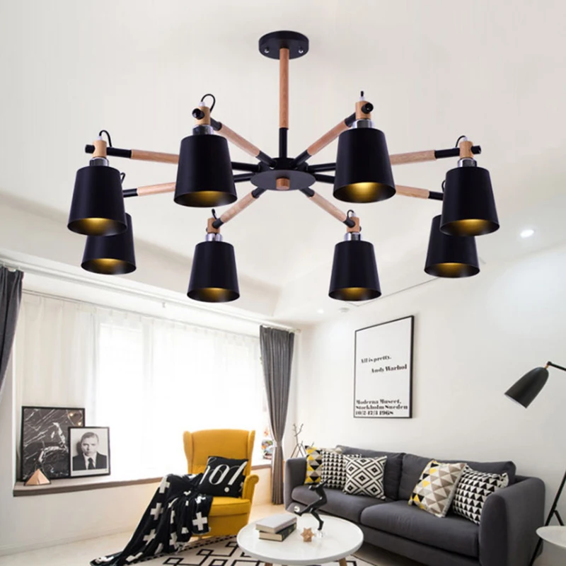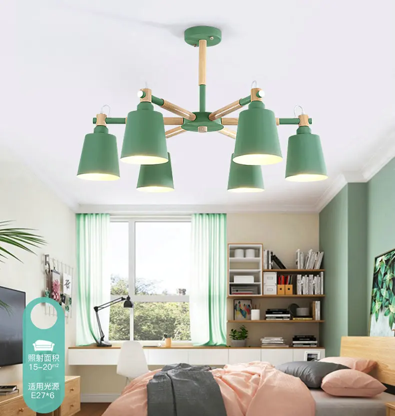 Современная Люстра светильник гостиной Материал: металл, дерево Максимальная мощность: 40 Вт Штанга для вешалки: 30 см Цвет изделия: белый, черный, серый, желтый, зеленый, синий, серый Держатель: E27 Лампа в комплект не входит Применение: спальня, гостиная, столовая, гостиница, ресторан и так далее