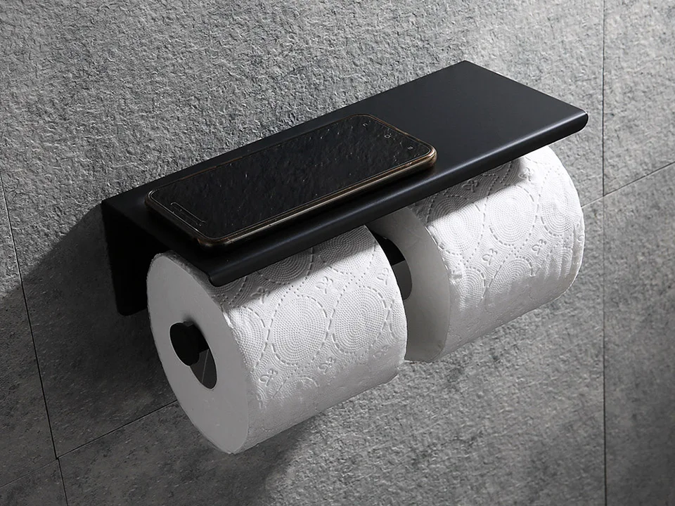 Держатель для туалетной бумаги с двойным кольцом, большая верхняя полка, черный, матовый, золотой и хромированный держатель для туалетной бумаги из нержавеющей стали