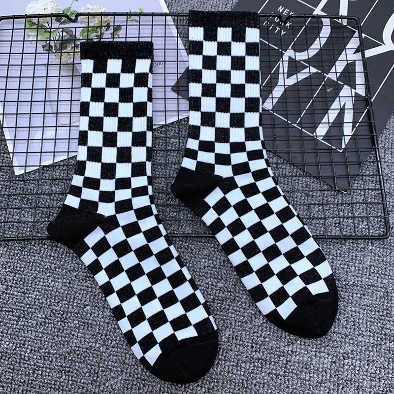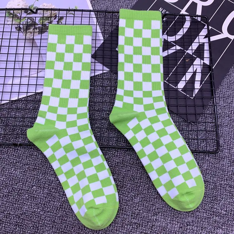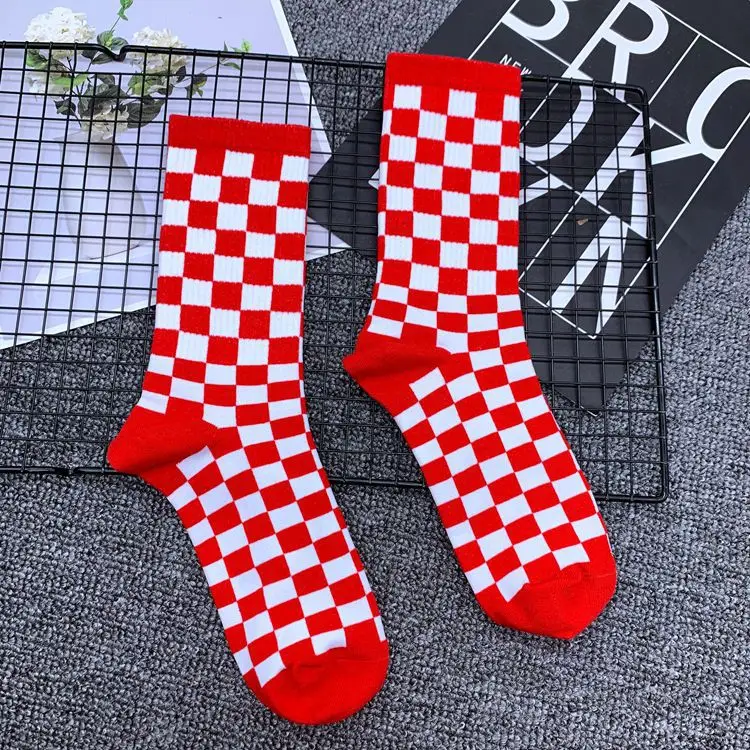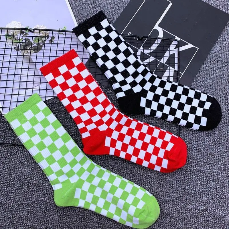 Корейские Веселые женские шахматные геометрические клетчатые носки в стиле Харадзюку для мужчин и женщин, хлопковая уличная одежда в стиле унисекс, Новинка