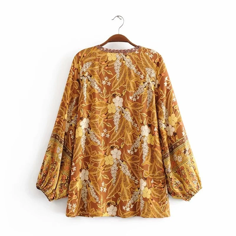 Винтажная шикарная Женская богемная блузка с цветочным принтом и V-...