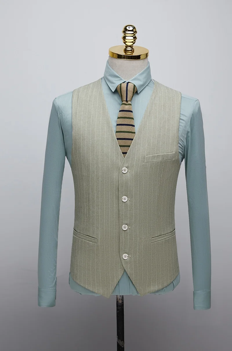 Костюм-тройка мужской, изумрудно-зеленый, Свадебный, облегающий