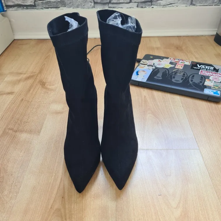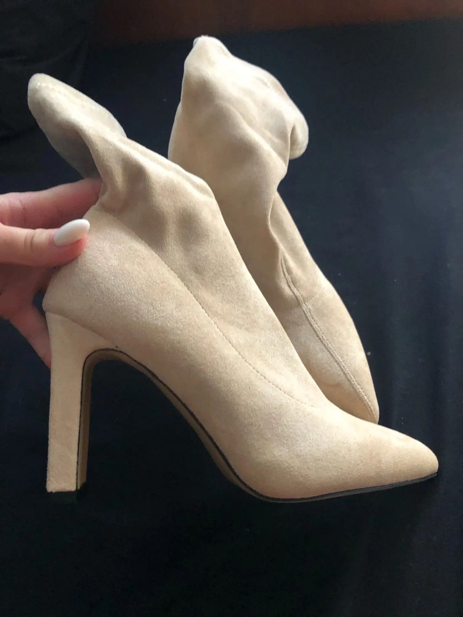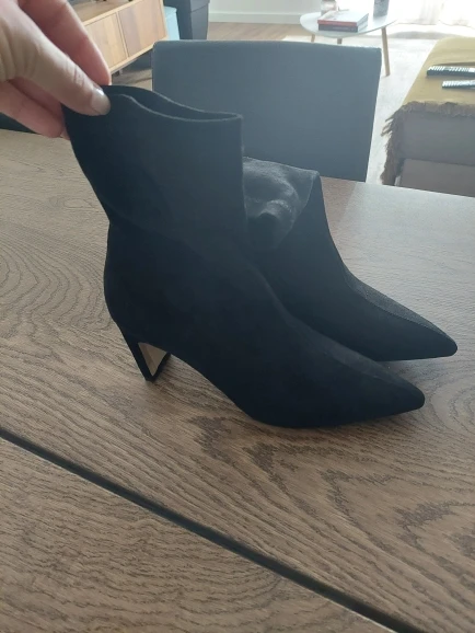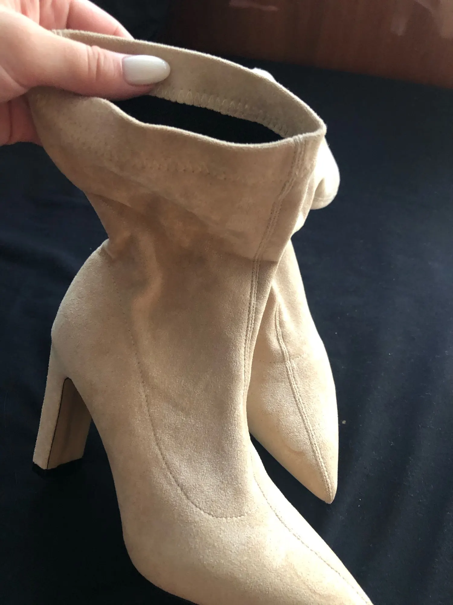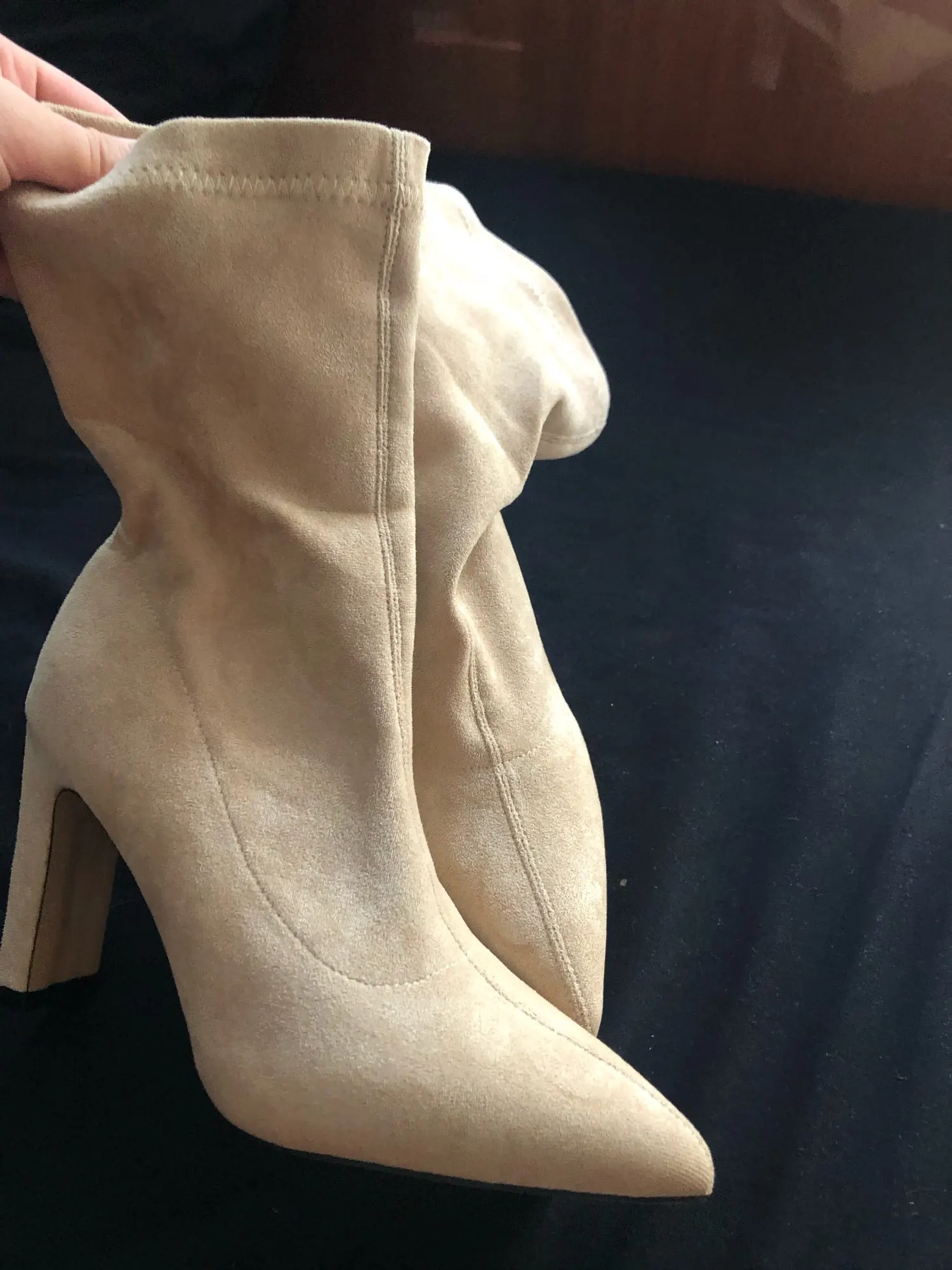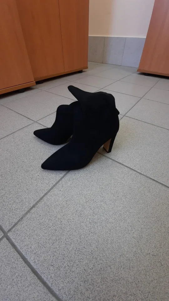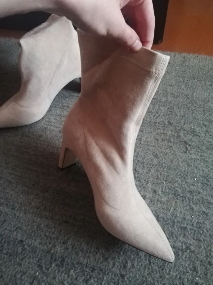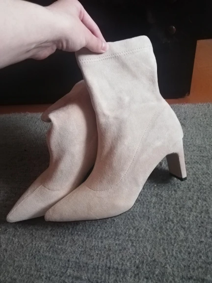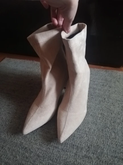 Отримала сьогодні взуття, задоволена на всі 100.Незважаючи на штучний замш, на вигляд прекрасні ! Розмір 36, відповідає звичайному 36-му,досить вузькі, але думаю розносяться !Каблук не високий і досить зручний !за таку ціну прекрасне взуття !сподіваюсь буде і носитись теж добре !