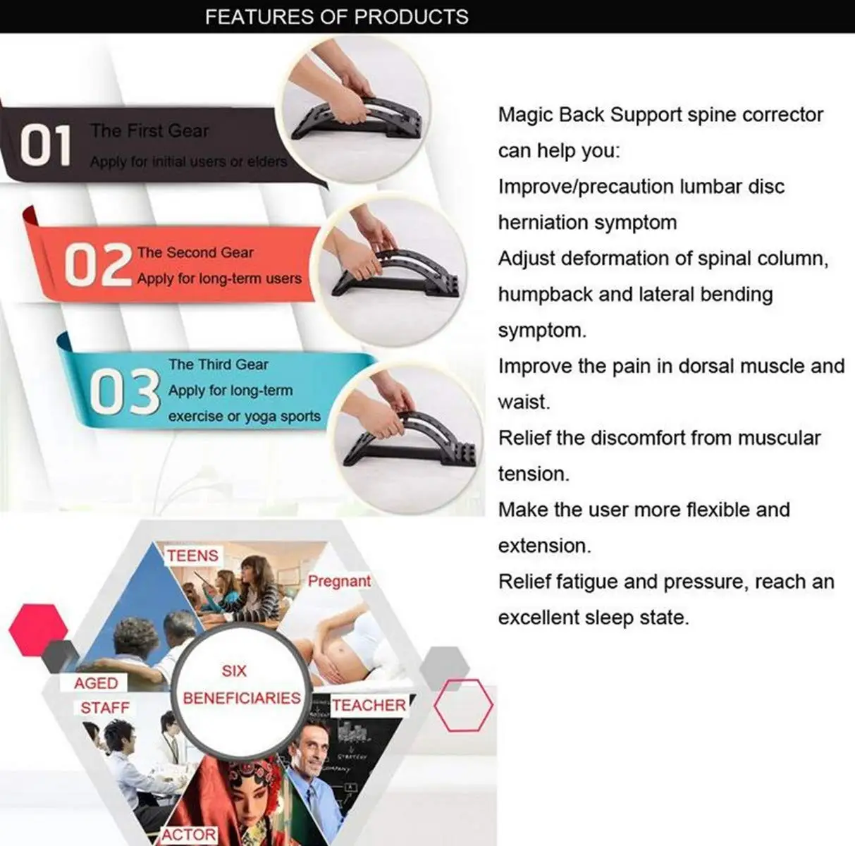 Массажер для спины, поддержка поясницы, снятие боли в позвоночнике, хиропрактика, 18 триггерных точек, 3-уровневое устройство для растяжения